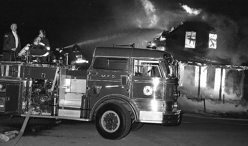 By now you’ve guessed that the place was rocking. Fire was belching out all the windows and doors of a one and a half story Cape Cod style home. The cops told us everyone was out and safe. The neighbors were all standing back and watching us. George got out of the officers’ seat of our Mack pumper, walked to the rear step, and calmly said, “I don’t want to see a single piece of 1.5” hose come off this pumper! Got it?” And with that pronouncement, three 2.5” lines were stretched and the fire was rather quickly out. We finally took one 1.5” line inside for mop-up, but there wasn’t much left, most of the roof was gone before we had water and parts of the second floor were hanging on by a few nails.