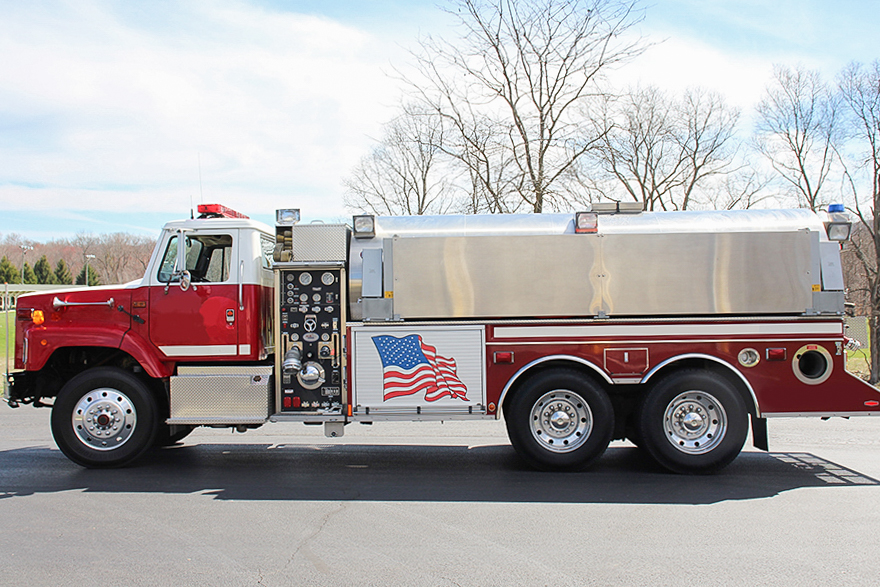 1990/2005 International/US Tank 500/3000 Tanker/Pumper, 1990 International conventional chassis with 2 person seating, powered by a Cummins NTC-350 Big Cam diesel engine and Allison HT-740 automatic transmission, Jake Brake, tandem axle chassis with snow chains, In 2005 everything from the cab back was replaced. US Tanker aluminum body, 500 GPM Hale APS single stage fire pump with current pump test, 2 crosslays above pump panel, booster reel, 3000 gallon poly booster tank with stainless steel wrap, compartments on both sides, rear square dump, one round dump each side, controlled by switches on rear or in cab, (2) rear direct fills, side mounted folding tank, (2) 6″ hard sleeves, 54,000 lb. GVWR, Aluminum wheels, lightbar, and air horns, rear traffic advisor and camera, great condition and ready to move some water, all 3 have very low miles ….$ 76,000 each