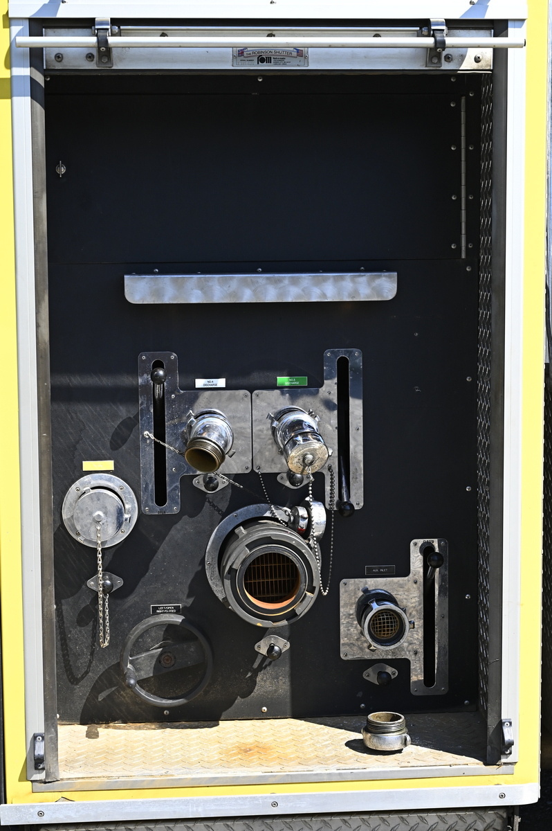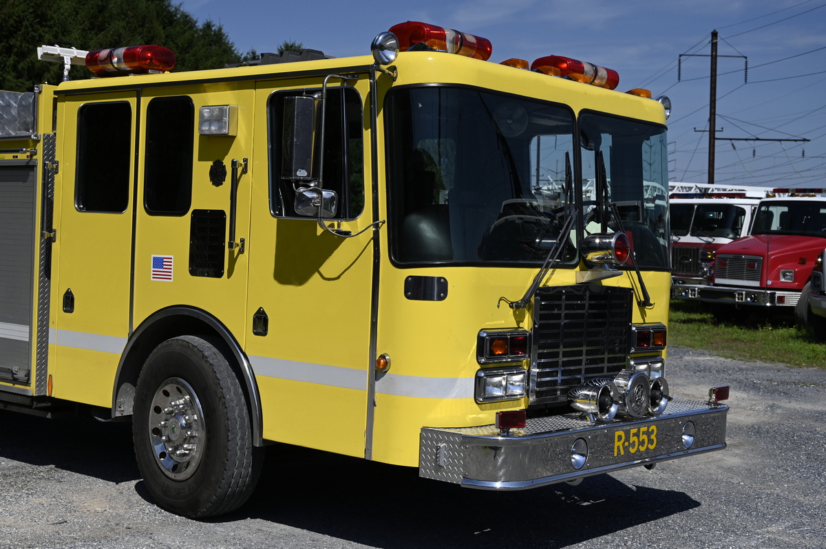 1993 HME 1500 / 500 Rescue Pumper, flat roof cab, six (6) person cab with 2 SCBA seats, extended bumper, stainless steel wheel covers, Detroit Diesel Series 60 350 hp. diesel engine, Allison automatic transmission, Darley 1,500 gpm single stage pump, side mount pump control panel, roll doors covering both pump panels, behind the panel manual master intake valve each side, two (2) 2.50″ discharges – left side, two (2) 2.50″ discharges – right side, deck gun discharge (no deckgun), booster hose reel (no booster hose), LDH discharge – right side, 500 gallon poly water tank, Spencer Mfg. aluminum body, three (3) large compartments each side with roll-up doors, aluminum treadplate compartment interior, rear step compartment with roll-up door, enclosed ladder and pike pole storage, spare SCBA bottle compartments, extension ladder, hydraulic hose reel (no hose), two (2) 6″ x 10′ suction hoses, 12 volt scene lights on the side of the cab and body, 5.0 KW Smart Power generator, two (2) quartz scene lights, Command Light six (6) head light tower, dual electronic siren speakers, dual air horns, side mini light bars, Mars 888 light, Federal Q2B siren, rear traffic advisor light, 166.00 in. wheelbase, 32,680 lb. GVWR, 2,362 engine hours, 17, 333 miles …… $ 29,000.00