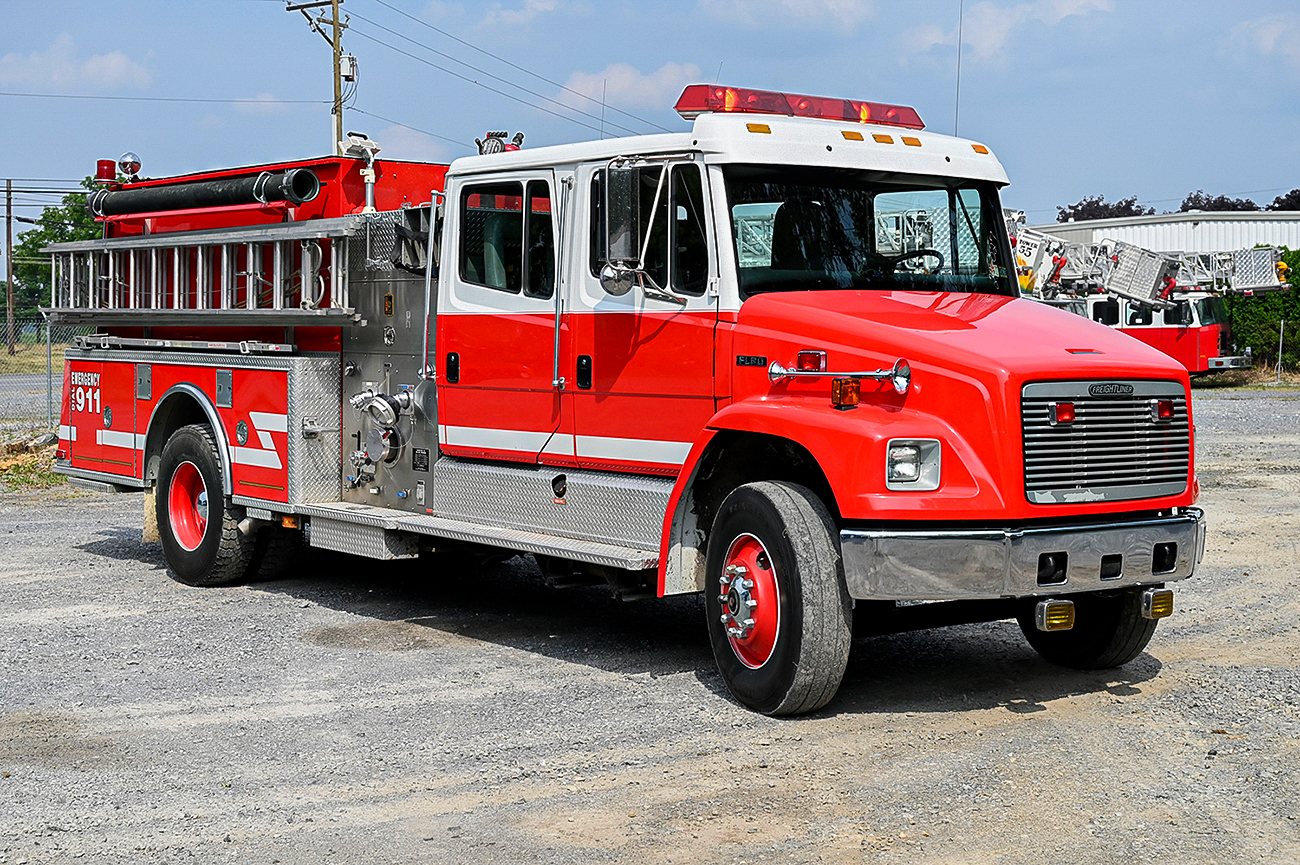 1994 Freightliner/KME 1500/1000 Rural Pumper, Freightliner FL80 4 door commercial cab with A/C, Cummins 8.3L 300 HP diesel engine, Allison MD3060 automatic transmission, 5 seats with 4 SCBA seats, 1500 GPM Hale side mount certified fire pump with heater, Elkhart foam system, 2 crosslays, KME Aluminum body, 1000 gallon fiberglass booster tank with rear direct fill, rear suction, 20 gallon foam tank, deck gun monitor with ground kit, 5KW diesel generator, 2 quartz lights, Ladders (14′, 35′, attic) warning lighting, siren, dual air horns, 28,300 miles..$ 35,000