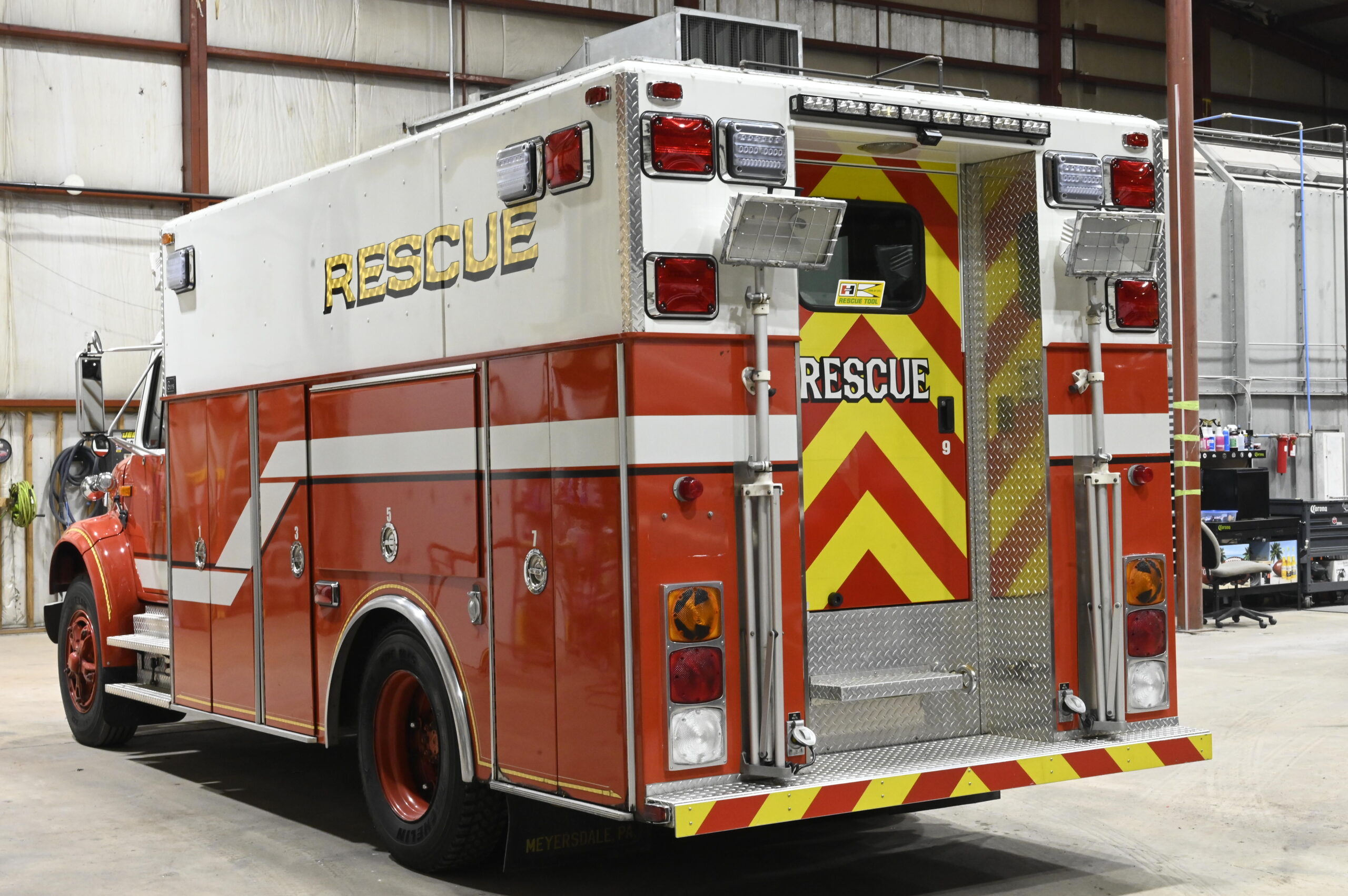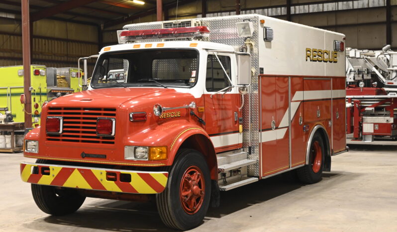 1994 International Medium Duty Walk-In Rescue, 2 door commercial 4900 Chassis, (2) person seating in cab (4) person seating in walk in,  International DTA-466 250HP engine, Allison MT-643 4 speed automatic transmission, automatic tire chains, Rear A/C and heat, 4 Guys STAINLESS STEEL walk-in rescue body with rear entry door, command center in rear, Storage and 4 SCBA brackets in rear, 10KW stadco diesel generator, cord reel, (2) telescoping quartz lights on front of box, (2) tripod quartz lights on rear of box, Upgraded LED 12V scene lights, Hurst hydraulic pump with reel and combination tool included, emergency light package, electronic siren, air horns, air brakes, Rear traffic advisor, , ONLY 19,000 MILES!!…………………. Asking $32,000