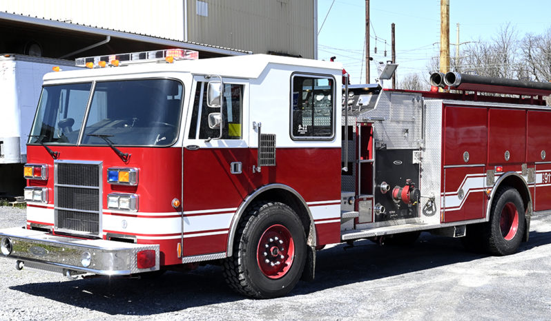1994 Pierce Dash 1000/1000 Pumper, Dash tilt-cab chassis with 5 seats, 3 SCBA seats, powered by a Caterpillar 3126 300 HP diesel engine and Allison automatic transmission, Waterous top-mount 1000 GPM single stage fire pump, 1000 gallon booster tank, 2 crosslays below pump panel, booster reel mounted in rear compartment, Deck gun, extended front bumper with 1.5″ discharge,  Pierce body with high side compartments on left side, (2) 500 watt lights, Redline 1500 watt invertor, LED lightbar, dual air horns in bumper, electronic siren, 2 sections of 6″ hard suction hose and 24′ and 14′ aluminum ground ladders, 10′ folding attic ladder, good condition, 41,600 miles and 3,995 engine hours…$ 25,000