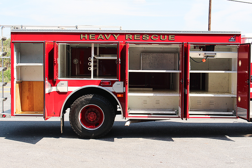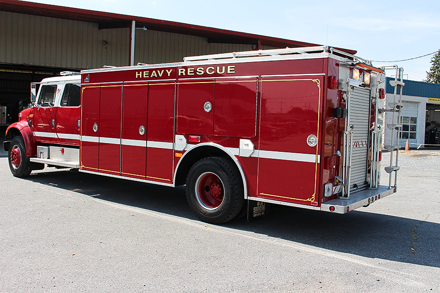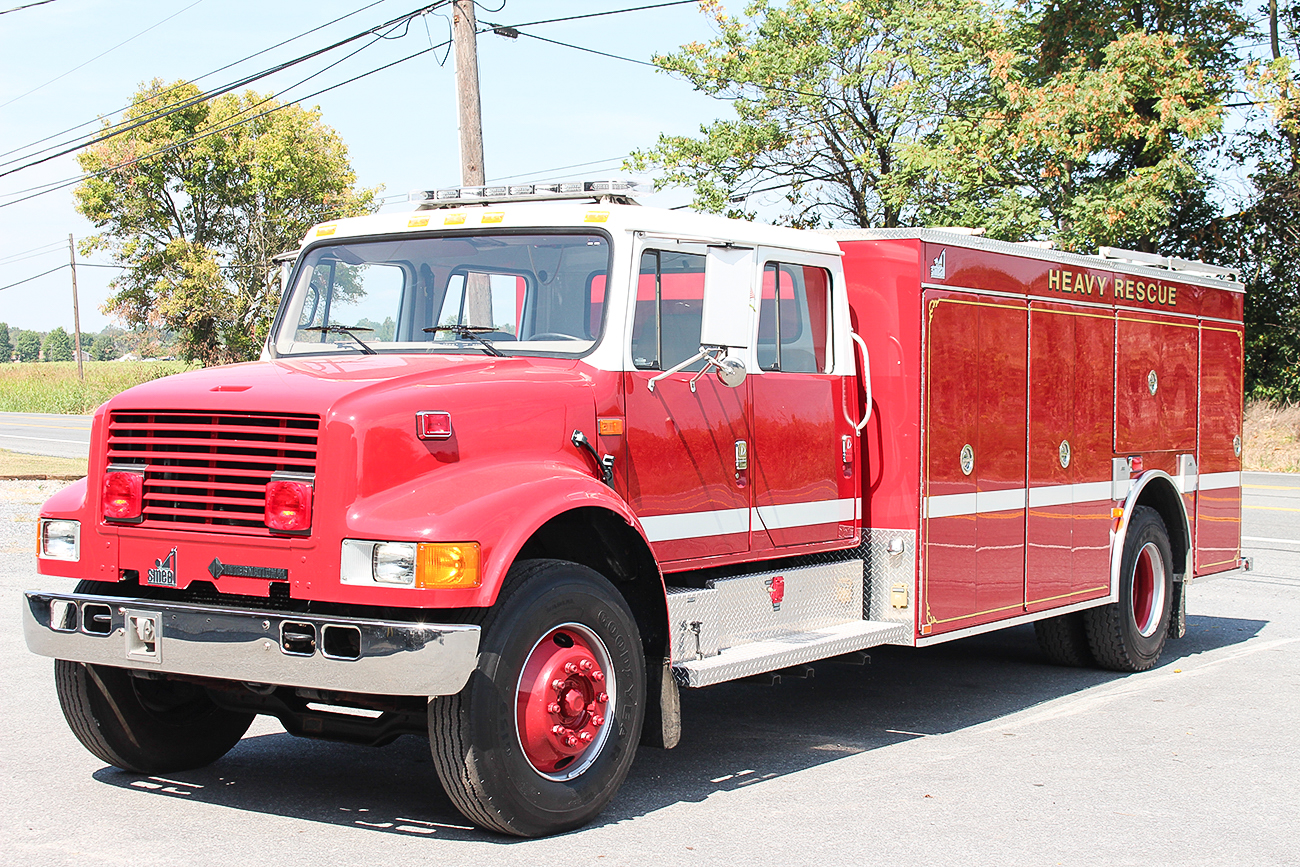 1995 International/Smeal Heavy Duty Rescue, 4 door commercial International 4900 Chassis, (5) person seating in cab, 250 HP Navistar DT466 Diesel engine, Allison MT643 automatic transmission, Smeal 17′ aluminum rescue body with pull out trays, Winco 25KW PTO generator, (2) cord reels, (2) tripod scene lights mounted on rear of box, Will-Burt 4 head light tower, Hurst Electric power unit, Hurst preconnected rear mounted hydraulic reel, LED light bar, emergency light package, electronic siren, Dual air horns, 33,200 GVWR with air brakes, Only 8,900 original miles and 1089 hours this would make a great rescue, or utility truck ONLY …..  $40,000