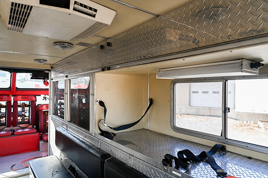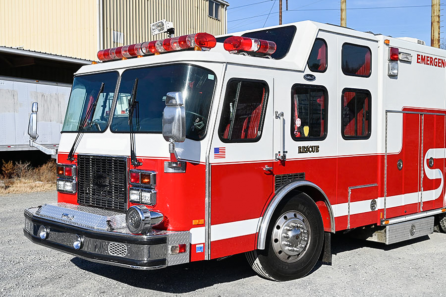 1996 E-One Walk-in Heavy Rescue, 3 door E-One protector enclosed tilt Aluminum cab with large raised roof, 7 seats with 5 SCBA seats in cab and an additional 5 in walk-in, powered by a  350 HP diesel engine, Allison automatic transmission, automatic snow tire chains, Cab A/C, E-One heavy duty Aluminum rescue body with hinged doors, lots of roll out trays and adjustable shelves, Dual underbody compartments, 15 KW PTO generator (one year old), dual electric cord reels on rear, air hose reel, extended front bumper with compartment for rescue tools, Holmatro spreader and electric power unit included, equipped with 4 cylinder Cascade system with dual fills, (2) scene lights on each body side (750 watt) , (2) tripod mounted scene lights on rear, Command Light Tower with 6 heads, full emergency lighting package, Powercall PCDX5 electronic siren, air horns, Federal Q2B, Aluminum wheels, 38,600 LB. GVWR, ONLY 16,000 MILES, 1522 engine hours ….….$ 69,500