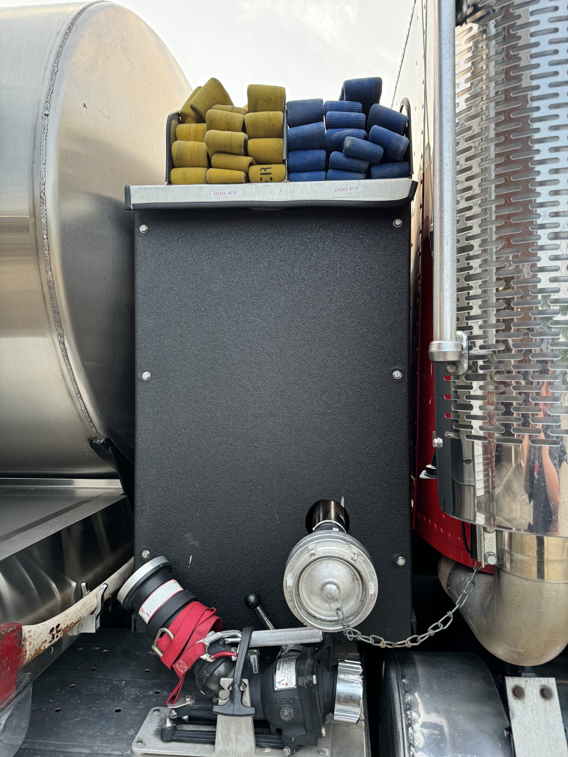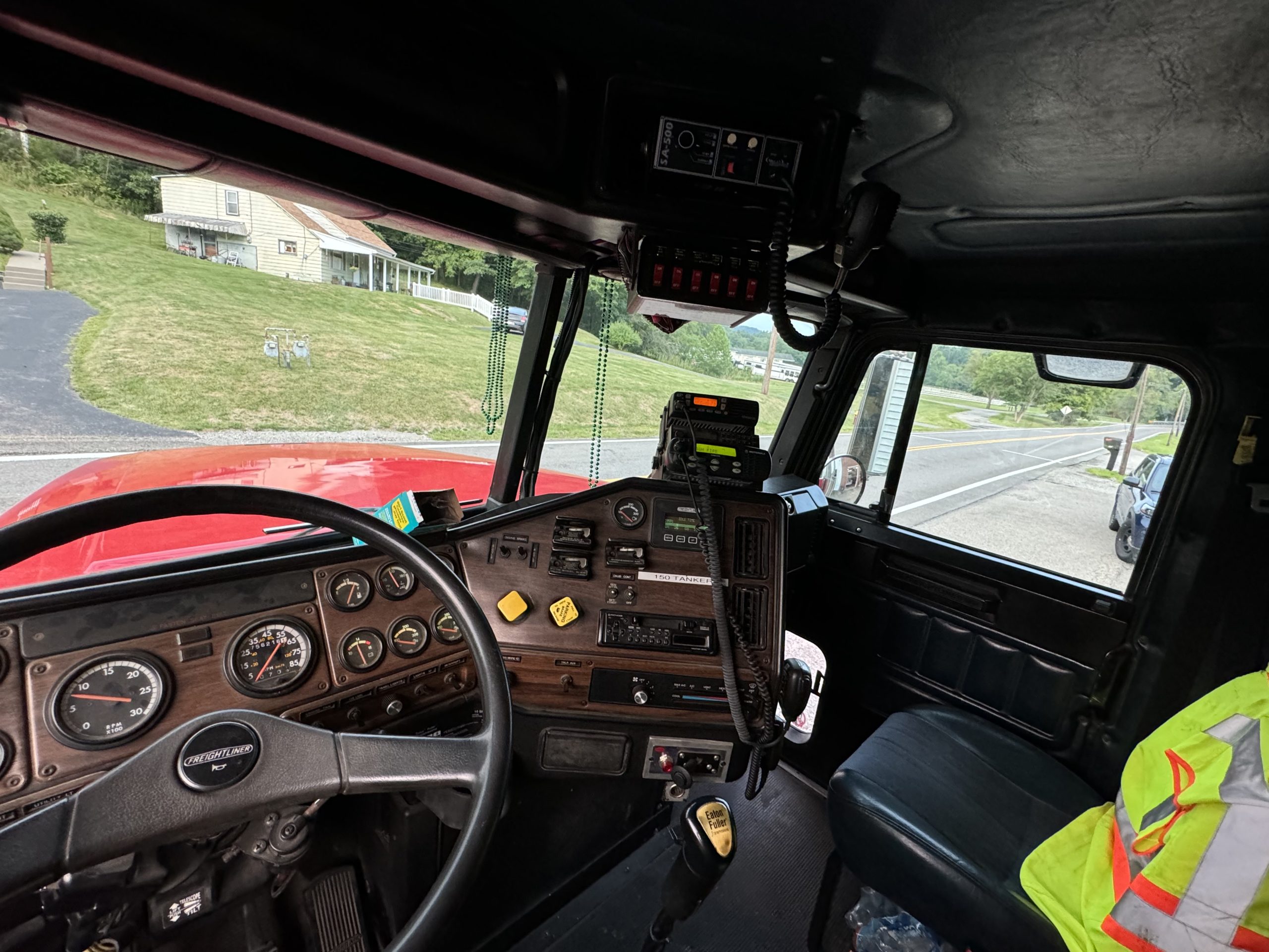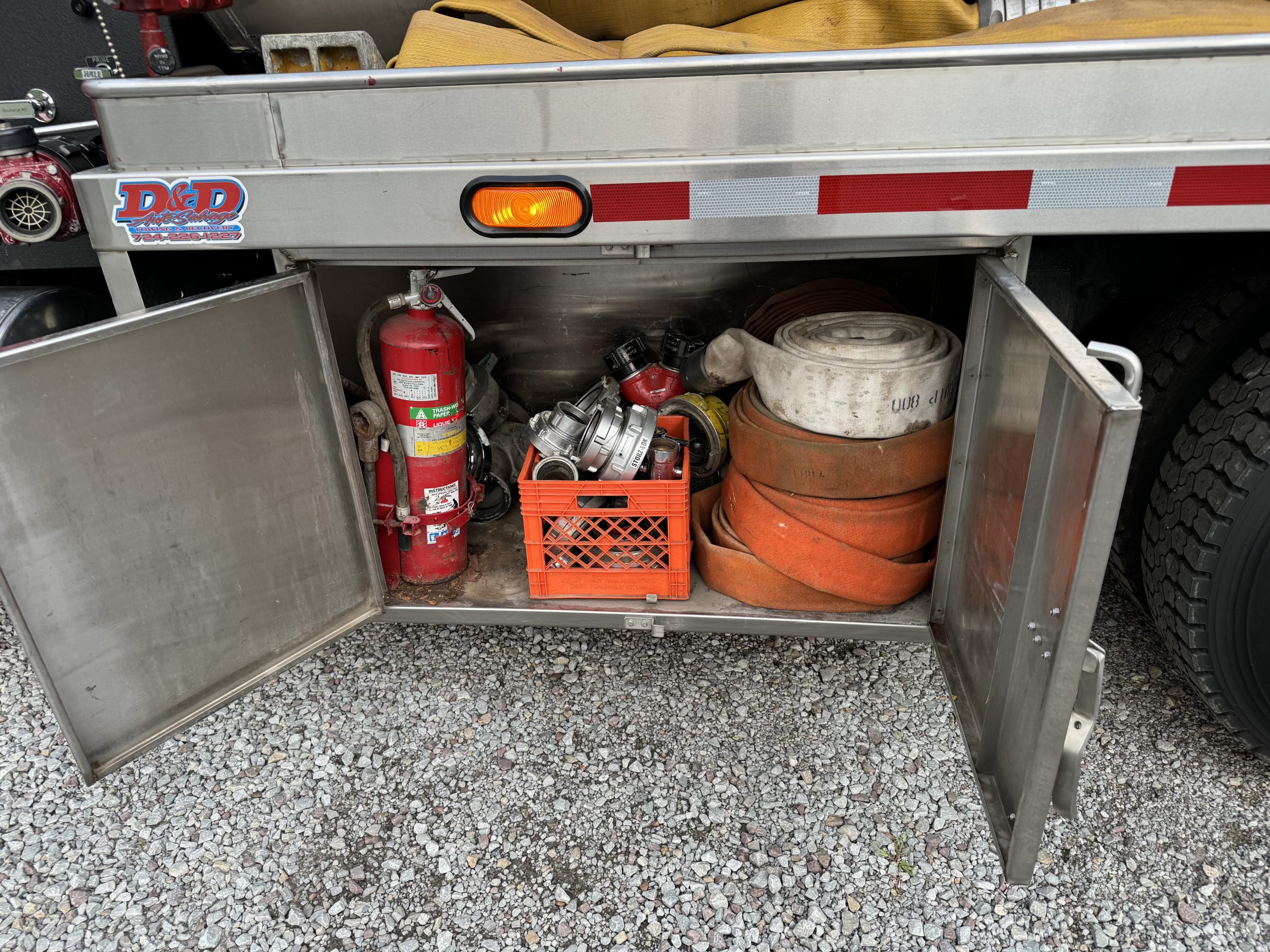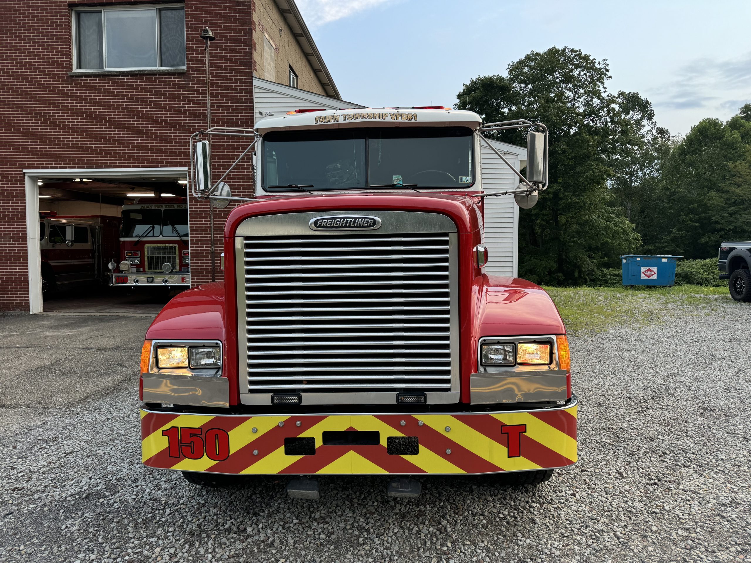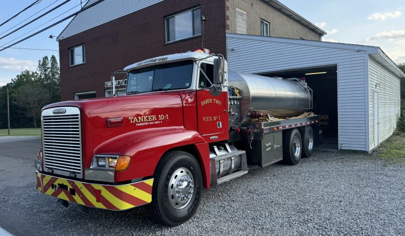 1996 Freightliner 500/3000 Pumper Tanker, 2 door commercial FLD120 cab with seating for 3, powered by a 470 HP Detroit 12.7L diesel engine with Jake Brake, 10 speed Eaton MANUAL transmission, inter-axle diff lock, A/C, 500 GPM single stage Hale pump, 3000 gallon stainless steel baffled OSCO tank, (2) crosslays (not pre connected), 3,000 gallon porta tank included, Dual boxes mounted under body, 12V scene lights, electronic siren, Emergency lighting, Polished aluminum wheels, New drive tires, Motor was rebuilt when department purchased it, currently 756,216 Miles (truck is still in service) Posting on behalf of Fawn Twp. VFD#1 …..asking $45,000