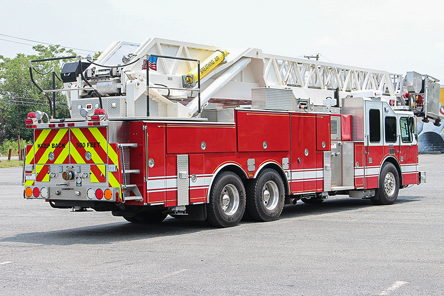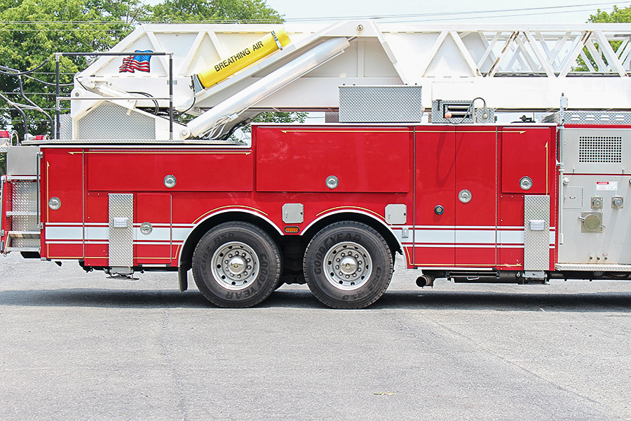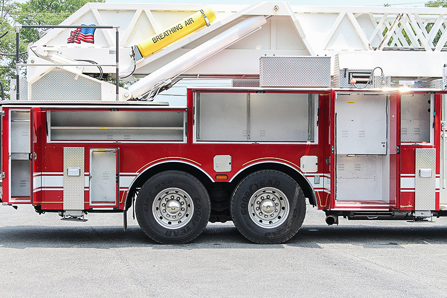 1996 LTI 100′ Aerial Platform Quint with 2019 refurb, simon duplex 4 door enclosed custom air conditioned cab with seating for 4 (3 SCBA) powered by a 60 series Detroit Diesel 470HP engine, Allison automatic transmission, 3 stage Jake brake, Waterous 2000 GPM fire pump, 300 gallon poly tank, aluminum body with 7 compartments on BOTH sides of body, LTI 100′ rear mount aerial platform with pre-piped waterway with dual monitors, 2 crosslays, Generator, (2) LED mounted quartz lights mounted near pump panel, 2 cord reels, breathing air to platform with 2 air cylinders, aerial intercom, aluminum ground ladders (35,24,16,14,10) current pump and aerial certificates, electronic siren, Dual air horns in bumper, Federal Q2B, all LED emergency and DOT lighting, newer paint, newer mechanicals, aluminum wheels, 1,650 aerial hours, 18,600 miles.. available NOW for $149,000