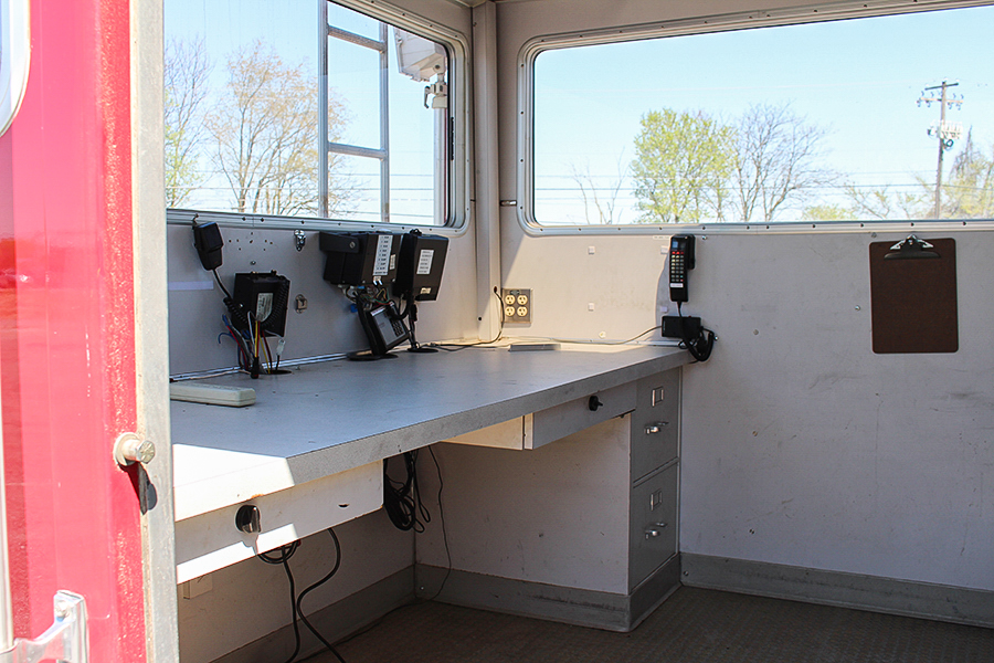 1997 E-One Heavy Rescue with rear command center, E-One custom 4 door chassis with seating for 5 (4 SCBA seats), Cummins 400 HP Diesel Engine, Allison automatic transmission with retarder, A/C, Large rear climate controlled command center with desk and storage, Lots of transverse compartment space, numerous roll out shelves, 6 bottle 6,000 psi cascade system, E-One aluminum body, 20KW PTO generator, cord reel, 4 head light tower, 2 quartz lights mounted on each side of body, rear mounted tri-pod light, 42,700lb. GVWR, Federal Q2B and electronic siren. This truck has a lot of space and would make a great rescue or HazMat vehicle, only 10,900 Miles and 647 hours …………$ 75,000