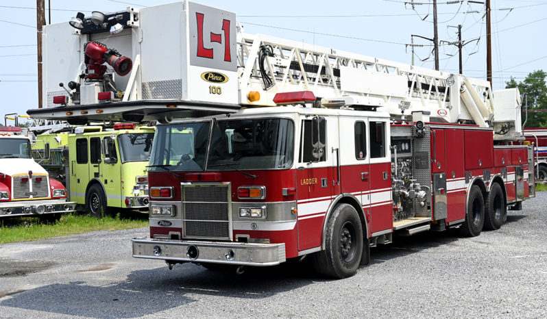 1999 Pierce 100′ Aerial Platform Quint, Lance 4 door enclosed air conditioned cab with seating for 6 (4 SCBA) powered by a Detroit Diesel 60 series 450 HP engine, Allison automatic transmission, Waterous 2000 GPM two stage fire pump, 200 gallon poly tank, Pierce aluminum body with compartments on BOTH sides of body, Pierce 100′ rear mount aerial platform with pre-piped electronic controlled waterway, 2 crosslays, Onan 7.5KW Diesel generator with (2) 1500W telescoping pole mounted quartz lights mounted near pump panel, (2) 500W mounted on bucket, breathing air to platform with 2 air cylinders, aerial intercom, Side hose chute with capacity for 1000′ of 5″, 6 aluminum ground ladders, current pump and aerial certificates, electronic siren, Dual air horns in bumper, 7,500 hours and 52,500 miles.. available NOW for $119,000