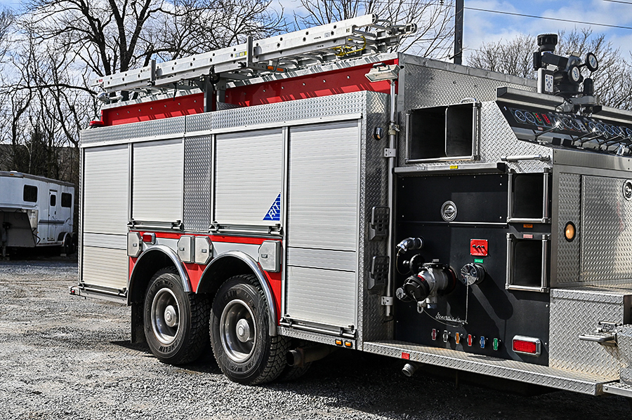 2000 Freightliner 2000/2000 Pumper Tanker, Freightliner heavy duty FL112 4-door chassis with seating for 4 (3 SCBA seats), Cummins ISM 370HP Diesel Engine, allison HD4060p 6 speed automatic transmission, A/C, automatic tire chains, Waterous CSU 2000 GPM top mount single stage pump with 16K BTU pump heater, FoamPro foam system, 1 -2.5″ crosslay above pump panel, 1 -1.75″ crosslay above pump panel, 2 -1.75″ speedlays in front of pump panel, 1 -1.75″ trash line in right running board hosewell, TFT deck gun, 2000 gallon Poly water tank, large compartments, hydraulic ladder rack with 24′, 14′, 10′ ladders, General Aluminum body with roll up doors, SCBA cylinder storage in wheel wells, AMPS 10KW hydraulic generator, 2 cord reels, 2 telescoping quartz lights, 58,000lb. GVWR., All LED emergency lighting, dual air horns, electronic siren.