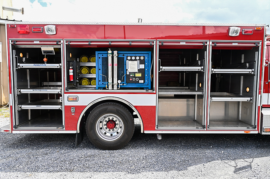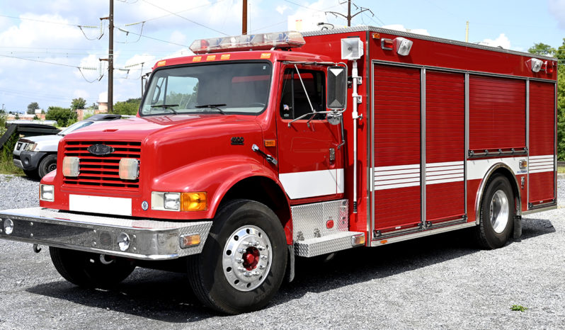 2000 International/Pierce Medium Duty Air and Light, 2 door commercial International 4900 Chassis, (3) person seating in cab, 320 HP Navistar DT530E Diesel engine, automatic transmission, Cab A/C, extended front bumper, Pierce aluminum rescue body with roll up doors and numerous adjustable shelves and pull out trays, Winco 45KW PTO generator, cord reels, (2) tripod scene lights mounted on rear of box, Will-Burt light tower, 6 bottle Cascade system with its own onboard compressor, emergency light package, electronic siren, Dual air horns, 35,000 GVWR with air brakes, Aluminum wheels, Only 13,000 miles this would make a great rescue, or utility truck ONLY …..  $100,000