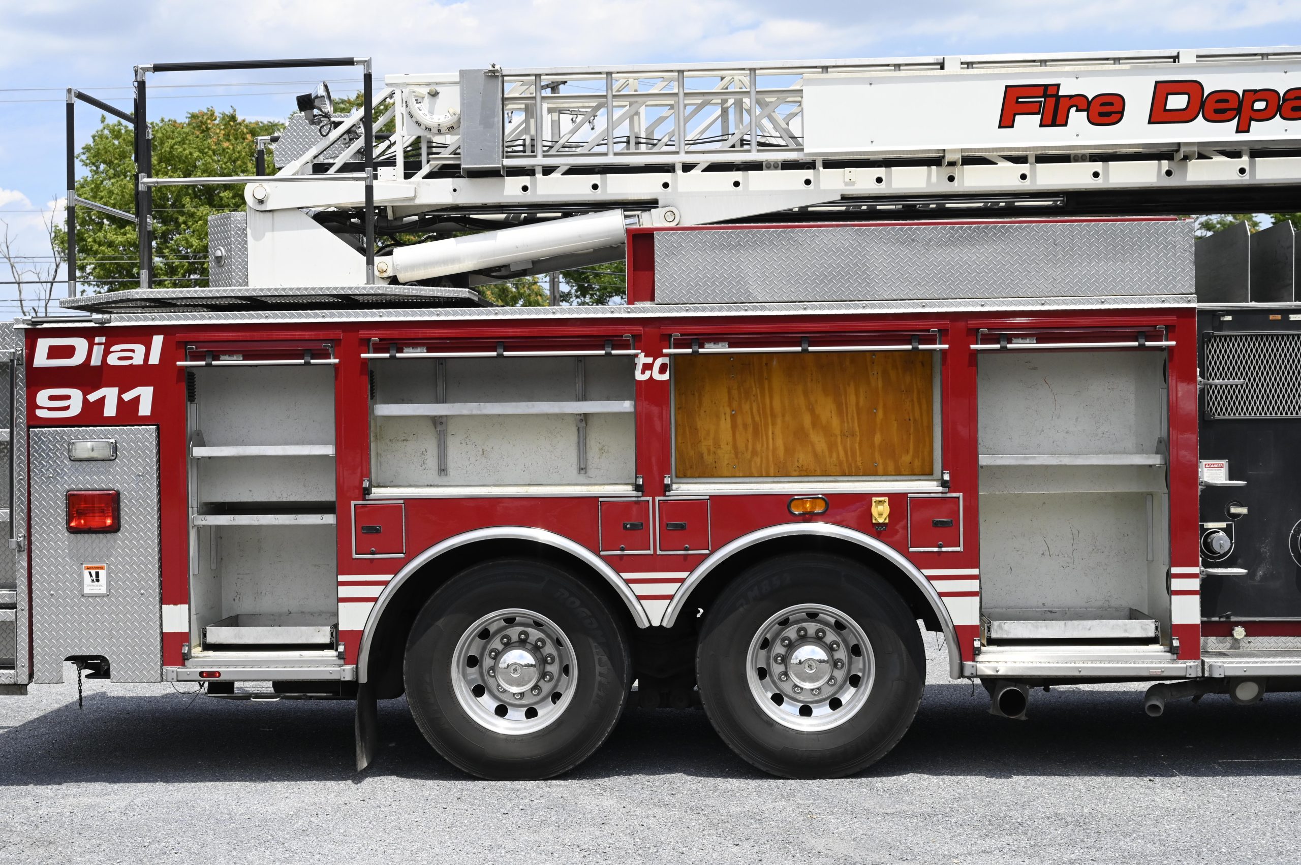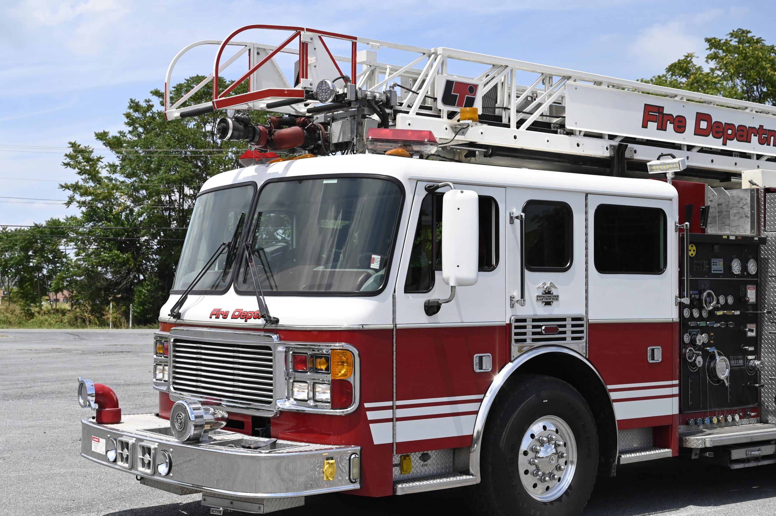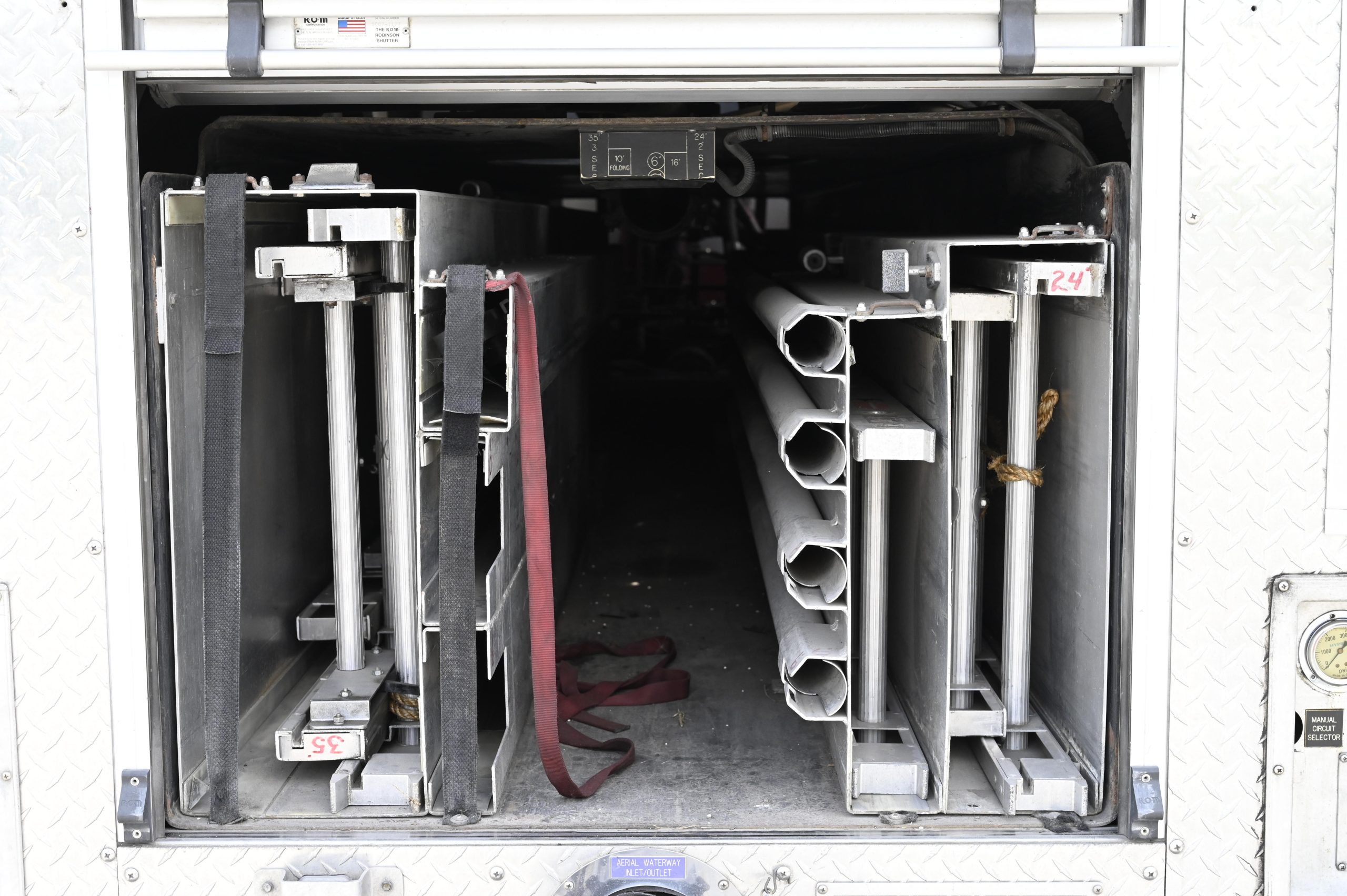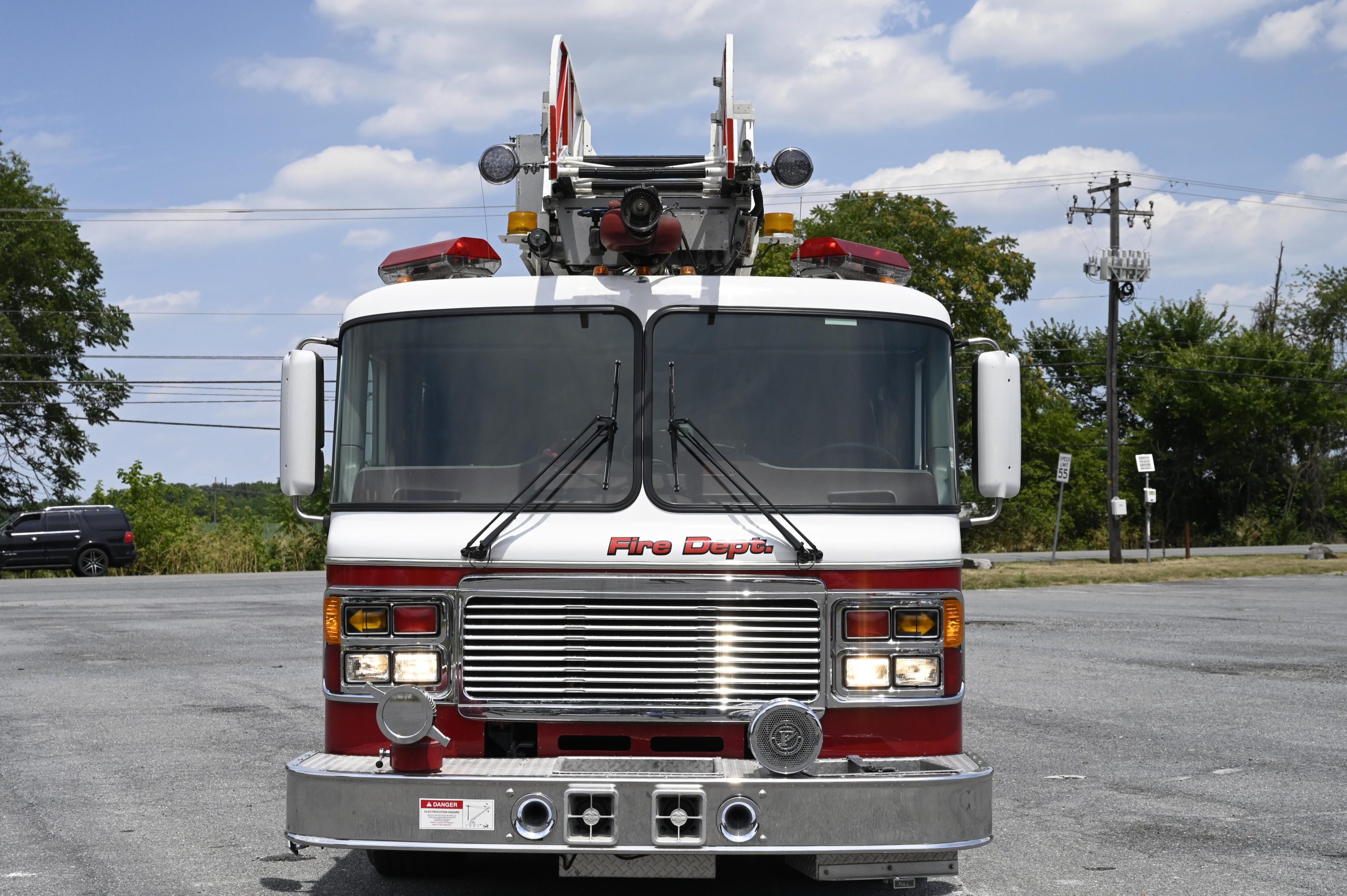 SALE PENDING 2000 LTI′ Aerial Quint, Eagle 148″ 4 door enclosed cab with raised roof, 5 seats (4 SCBA), powered by a 60 Series Detroit Diesel 12.7L 500 HP diesel engine and Allison 5 speed automatic transmission with Retarder, A/C, 1500 GPM Waterous CSU single stage fire pump, (2) 1.5″ & (1) 2.5″ crosslays, 750 gallon poly booster tank, 24″ front bumper 1.5″ outlet with hose tray and 5″ swivel inlet, AH-75′ 3 section rear mount ladder, 600 lb. tip load, pre-piped waterway with Elkhart monitor on aerial tip, ALF Aluminum body with aluminum roll-up doors on both sides, 35′, 24′, 16′ and 10′ aluminum ladders in rear and 20′ on aerial main, (2) FRC LED telescoping scene lights mounted on rear of cab, emergency light package, electronic siren, Federal Q2B, Rear vision camera, air horns, 61,500 lb. GVWR, Aluminum wheels, 220″ wheelbase, ONLY 29,200 miles, 3,067 engine hours 718 aerial hours, $ 105,000