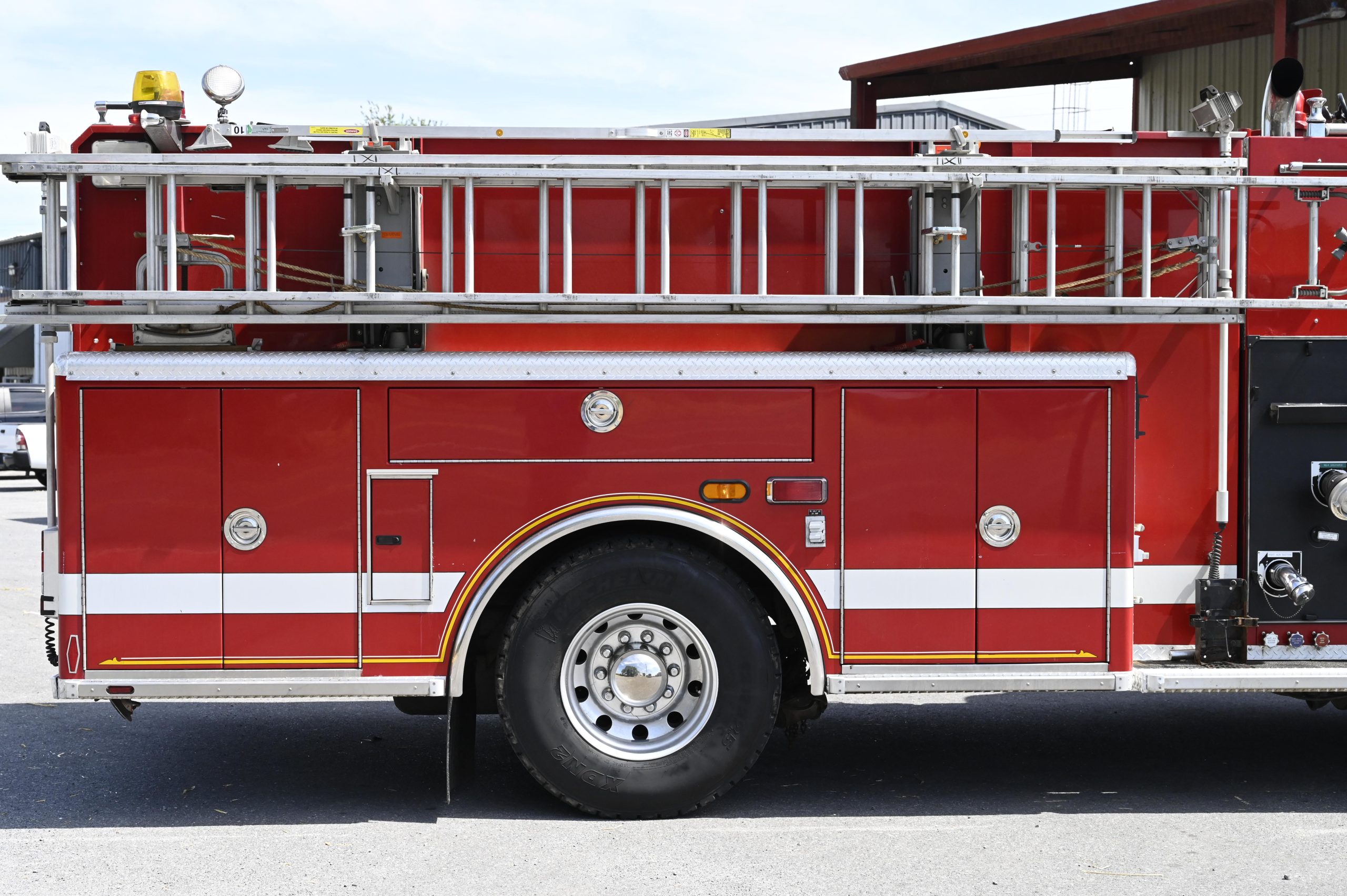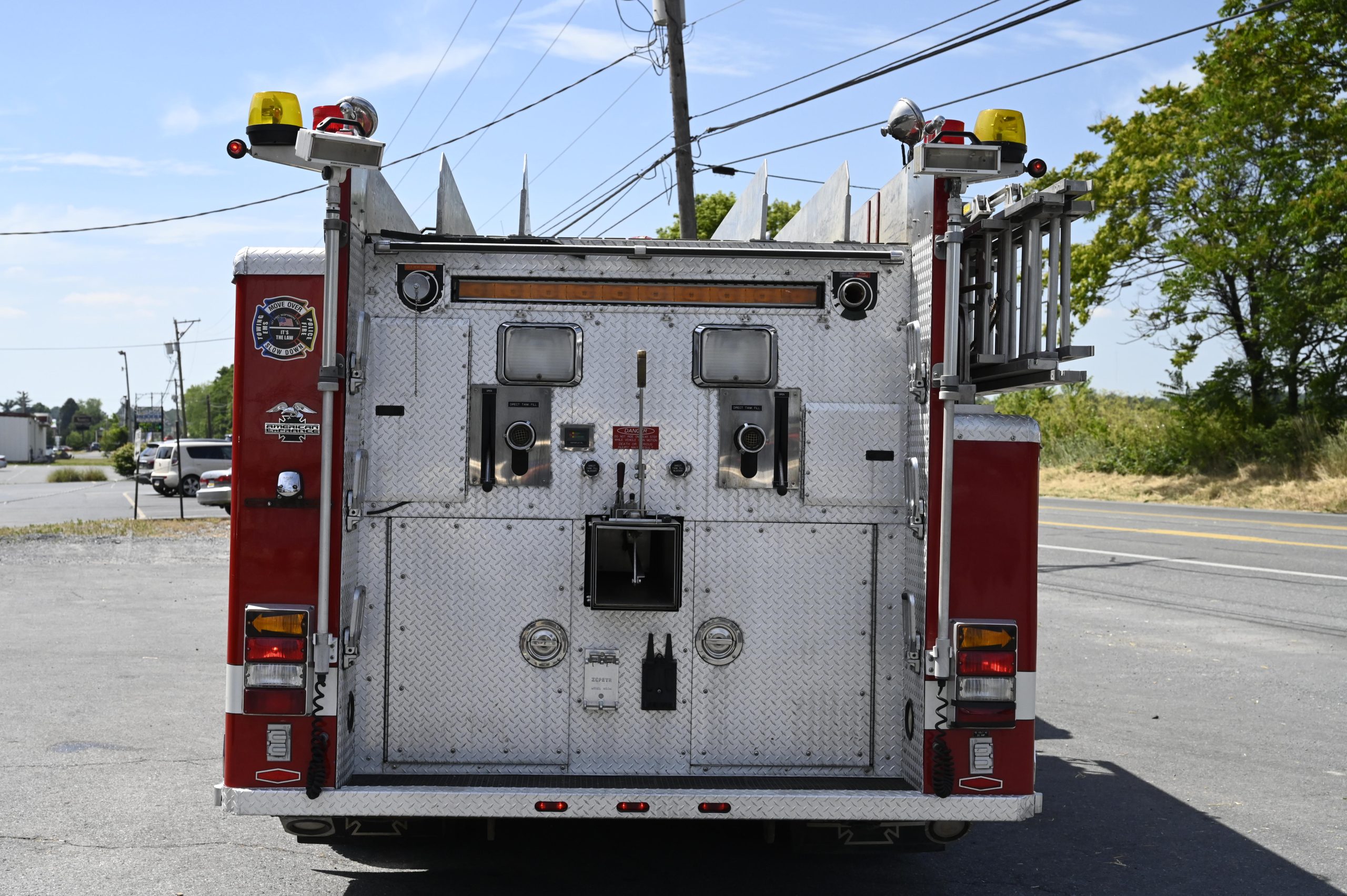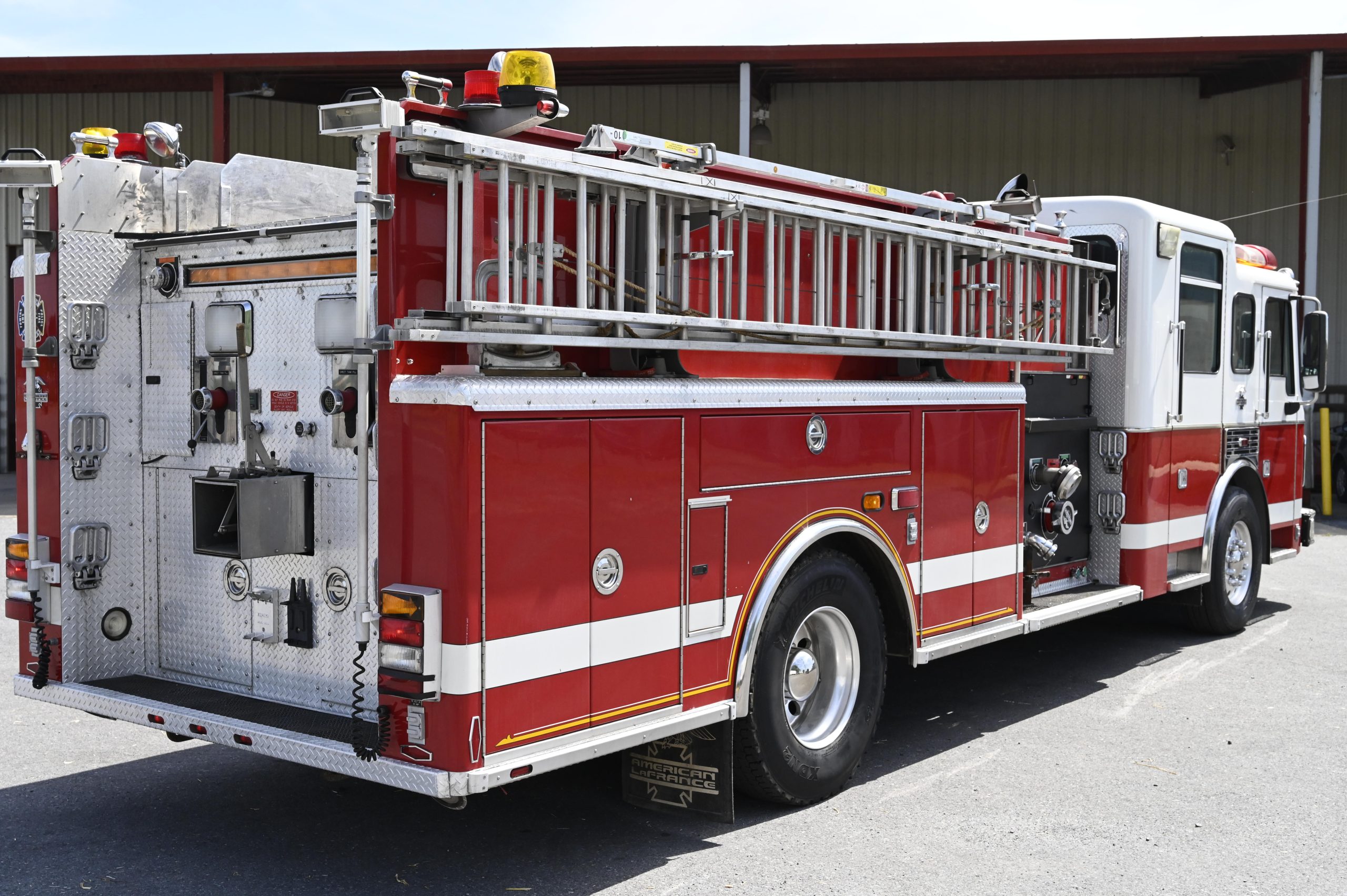 2001 American LaFrance 1250/1250 Pumper, 4 door raised roof custom Eagle 148″ air conditioned cab with seating for 7 (6 SCBA seats), powered by a 60 Series Detroit Diesel 500HP engine with Jake brake, Allison HD4060P automatic transmission, on-spot tire chains, Side mount 1250 GPM single stage pump, 1250 gallon poly tank, (2) 1.5″ crosslays, 5″ front suction, deck gun with stack tips and ground mount, Booster reel mounted over pump with 200′ of 1″ hose, 10″ Newton rear dump, Dual 2.5″ rear direct tank fills, ALF Aluminum body with numerous roll out trays, Honda 5KW gas generator, (4) telescoping scene lights mounted on corners of body, Hydraulic ladder rack (35′, 16′, 10′), (3)6″ X 10′ hard sleeves,(1) pick head (1) flat head axe, electronic siren, dual air horns, Federal Q2B, rear arrow stick, 2 wheel chocks, Aluminum wheels, vertical exhaust, SCBA storage in wheel wells, ONLY 38,400 Miles and 2,700 engine hours………. $59,000