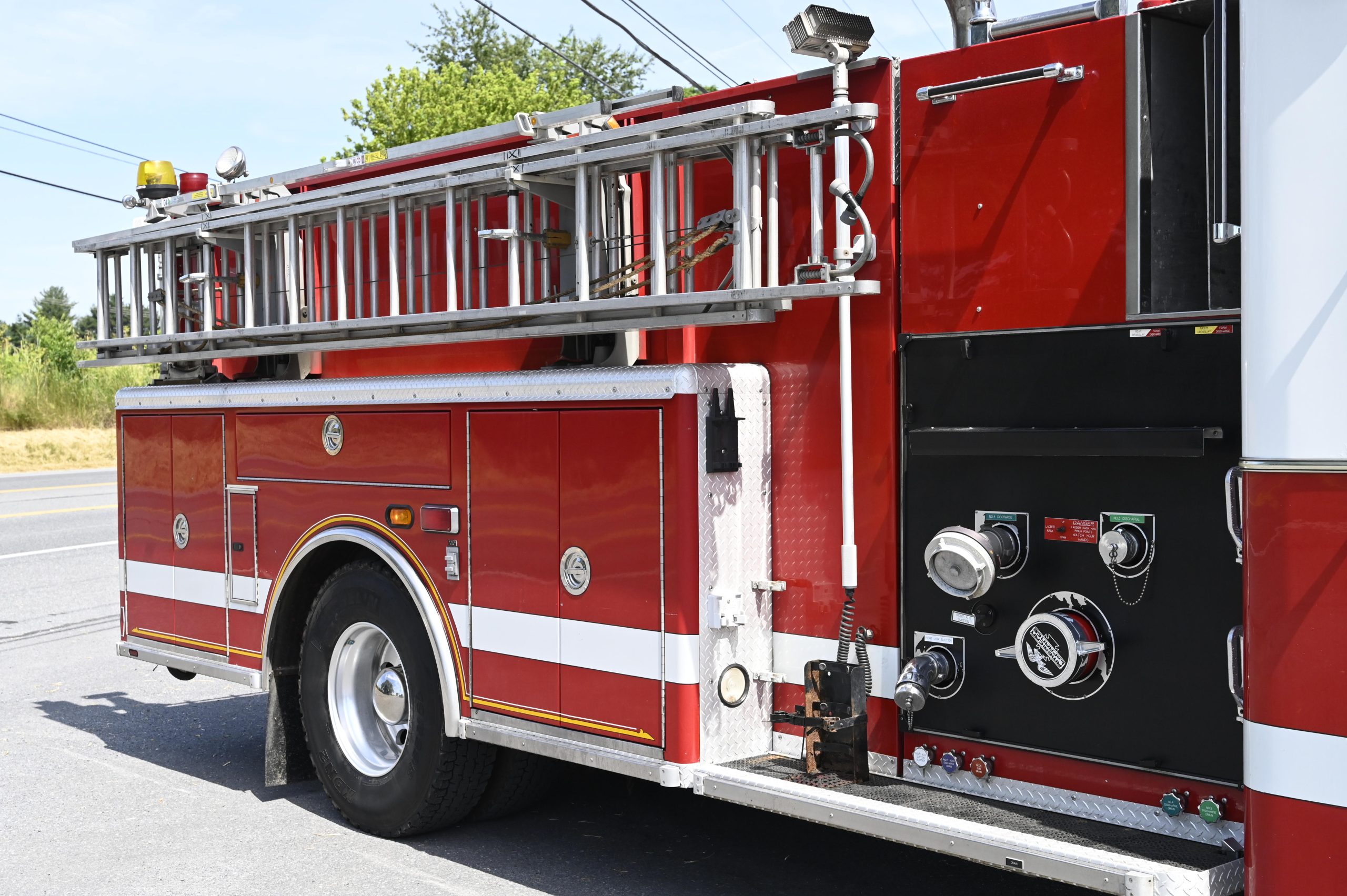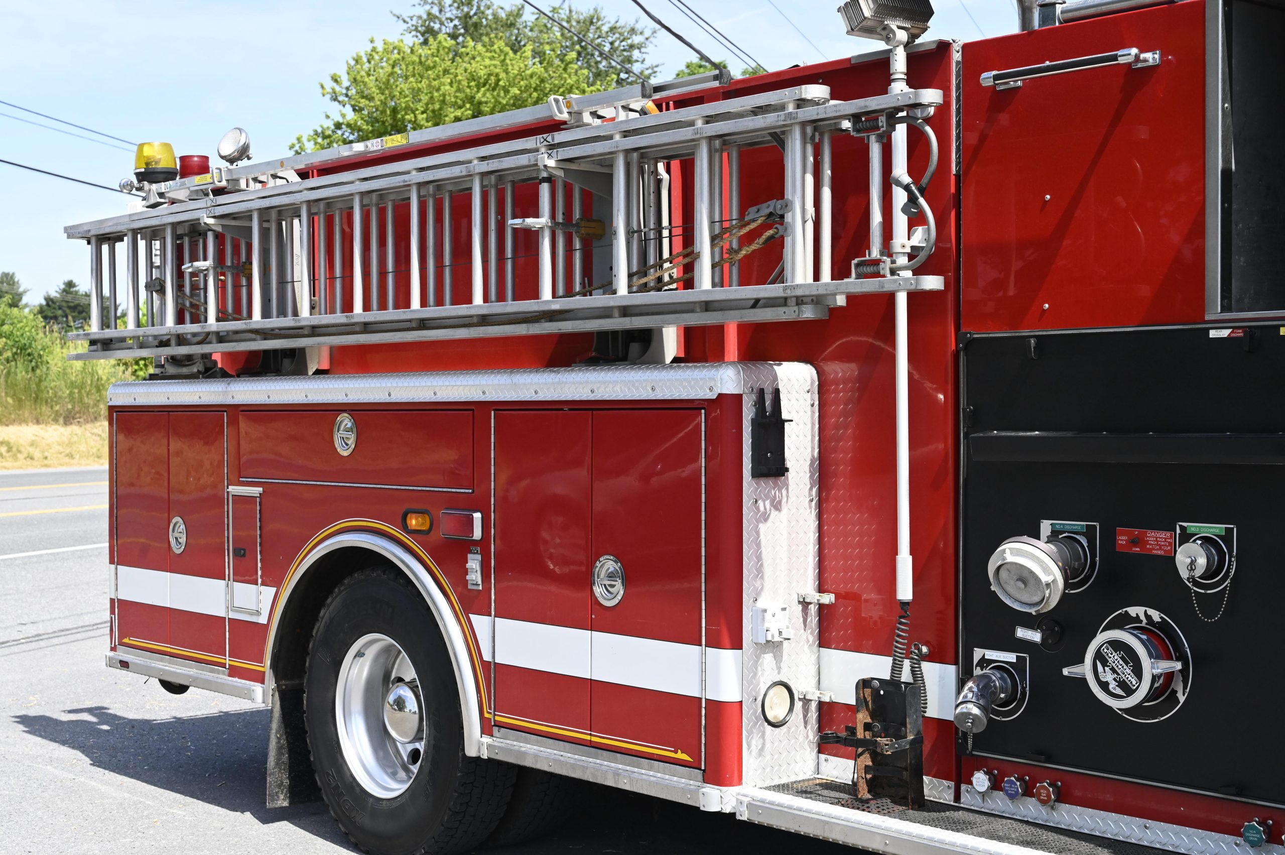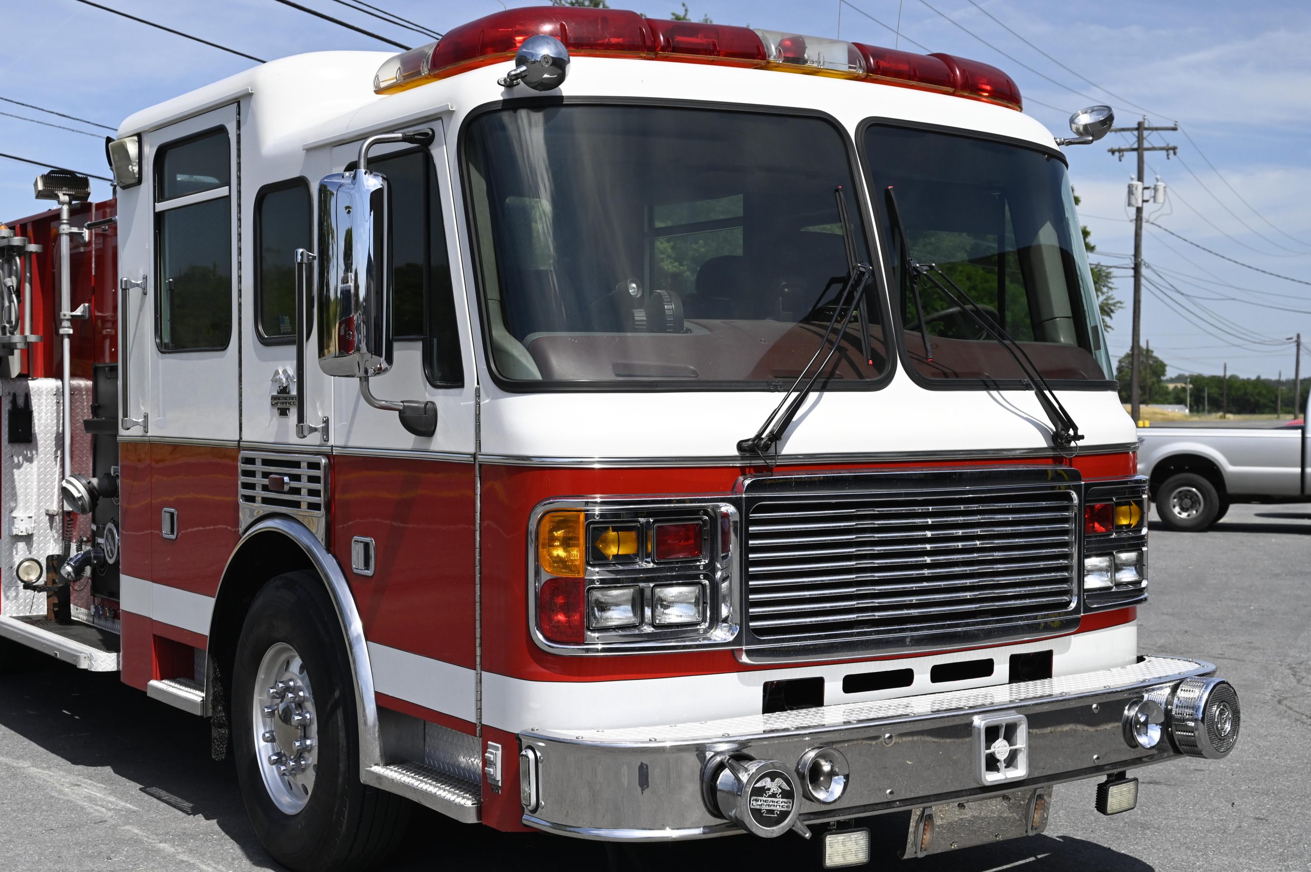 2001 American LaFrance 1250/1250 Pumper, 4 door raised roof custom Eagle 148″ air conditioned cab with seating for 7 (6 SCBA seats), powered by a 60 Series Detroit Diesel 500HP engine with Jake brake, Allison HD4060P automatic transmission, on-spot tire chains, Side mount 1250 GPM single stage pump, 1250 gallon poly tank, (2) 1.5″ crosslays, 5″ front suction, deck gun with stack tips and ground mount, Booster reel mounted over pump with 200′ of 1″ hose, 10″ Newton rear dump, Dual 2.5″ rear direct tank fills, ALF Aluminum body with numerous roll out trays, Honda 5KW gas generator, (4) telescoping scene lights mounted on corners of body, Hydraulic ladder rack (35′, 16′, 10′), (3)6″ X 10′ hard sleeves,(1) pick head (1) flat head axe, electronic siren, dual air horns, Federal Q2B, rear arrow stick, 2 wheel chocks, Aluminum wheels, vertical exhaust, SCBA storage in wheel wells, ONLY 38,400 Miles and 2,700 engine hours………. $59,000