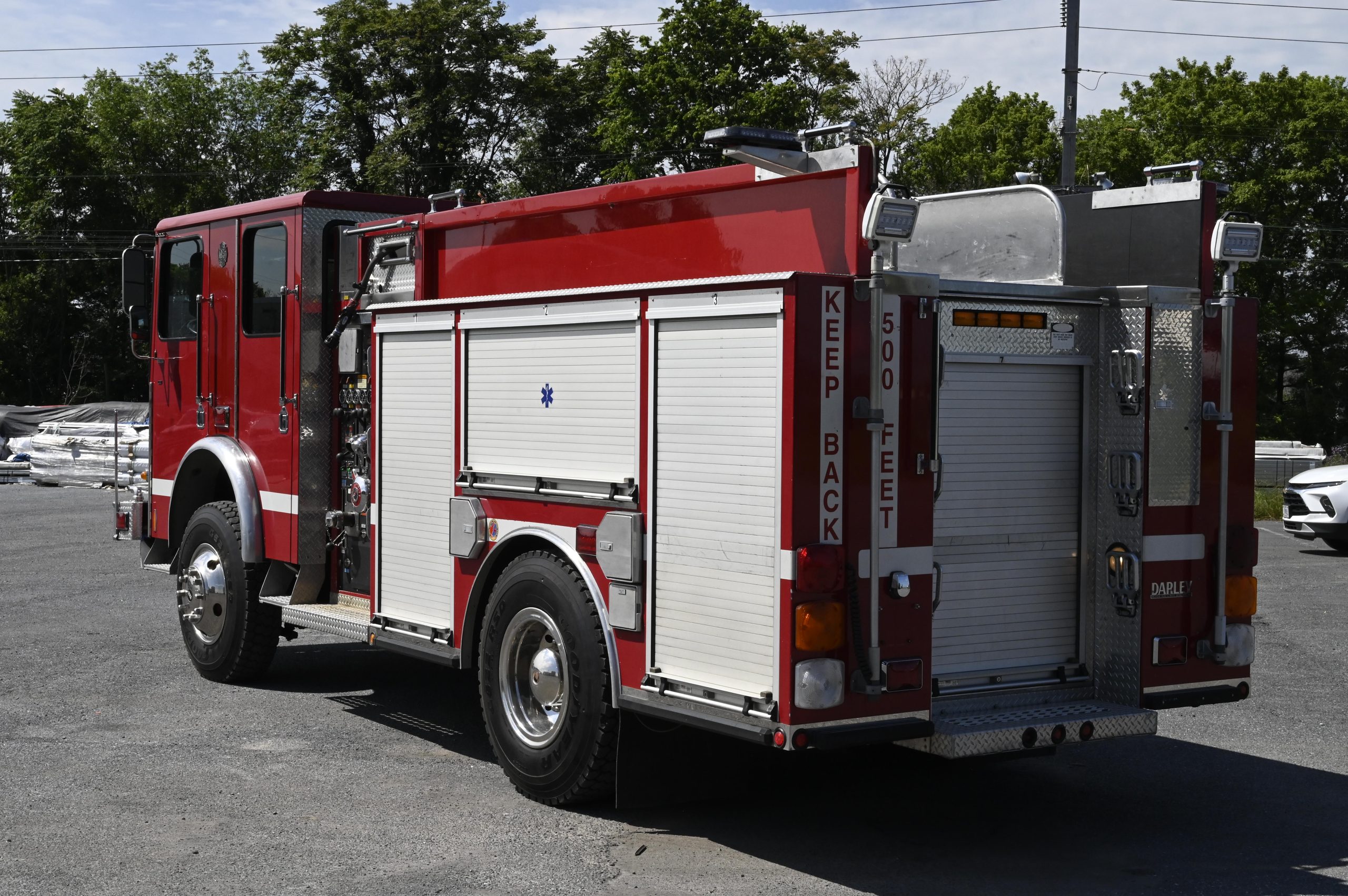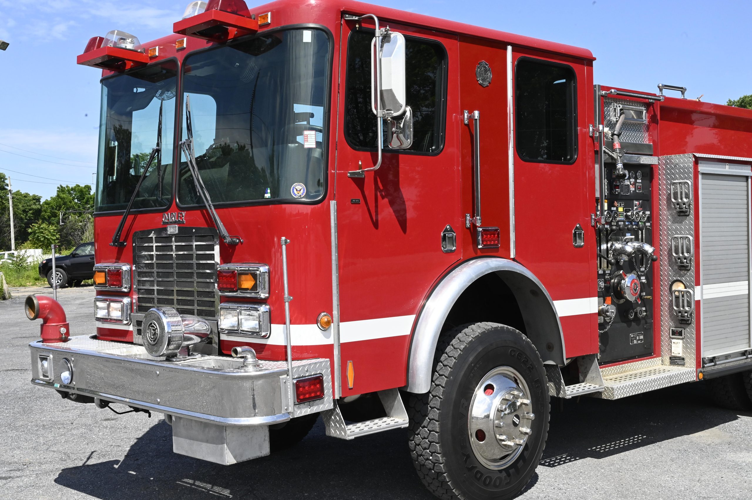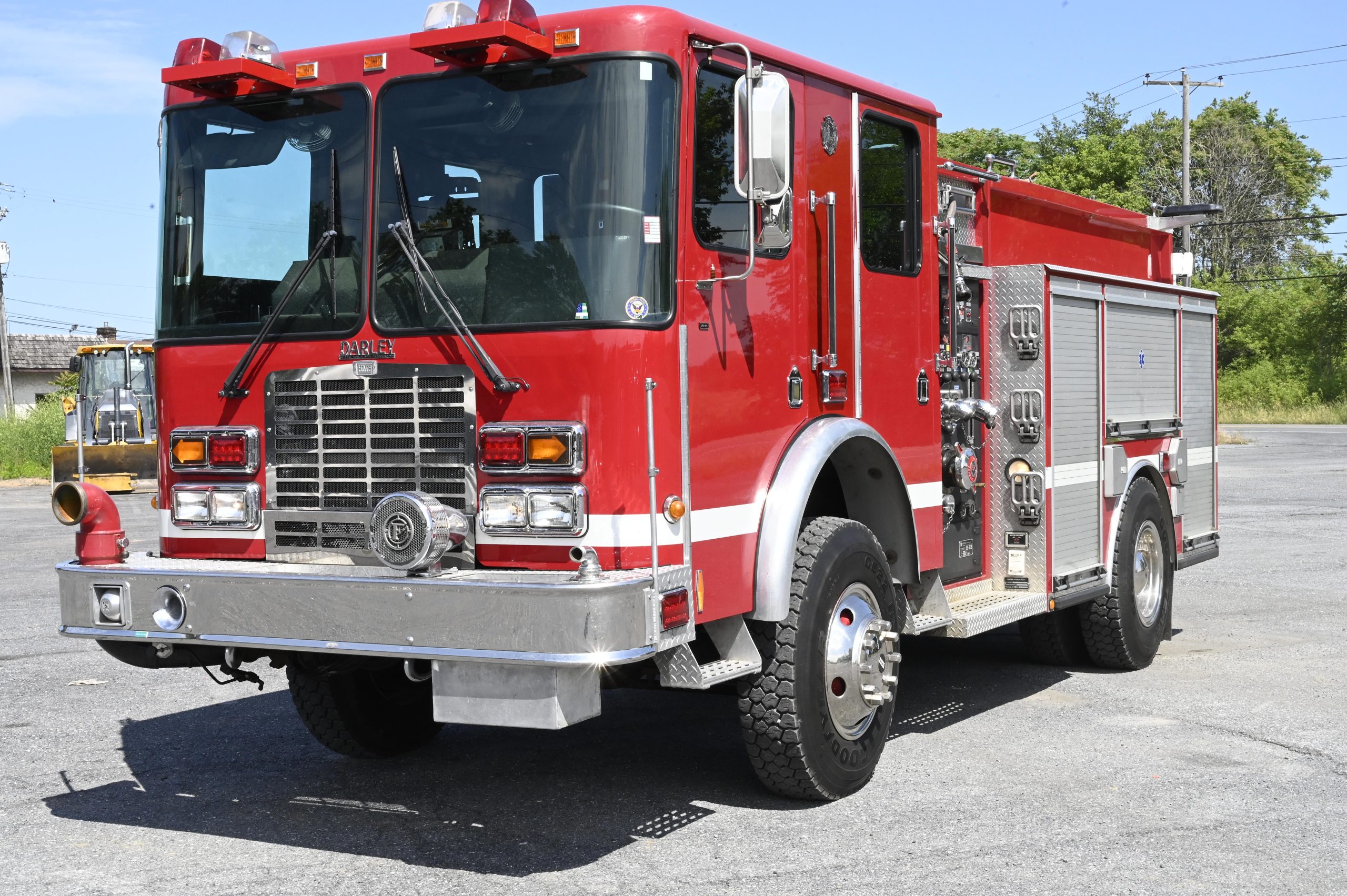2001 HME/Darley 4X4 1000/500 Attack Pumper, HME Custom 4 door tilt cab chassis with 6 person seating, (3 SCBA), powered by a Cummins 8.3L ISC 315HP diesel engine with Allison MD3060 automatic transmission and Jake brake, Aluminum Body, 1000 GPM Darley single stage fire pump with CAFS (282 hours), 500 gallon poly booster tank, (1) crosslay, extended front bumper with 1.5″ preconnect and 5″suction, Booster reel mounted over pump panel, (2) 12V telescoping LED quartz lights mounted on rear, SCBA storage in wheel wells, ladder tunnel with 24′ & 14′ ladders, Emergency light package (mostly LED), electronic Q2B siren, dual air horns, rear arrow stick, 40,540 GVW, ONLY 16,800 miles and 1,800 engine hours, This truck is ready to be put in service and go off road………………. $99,000!!!