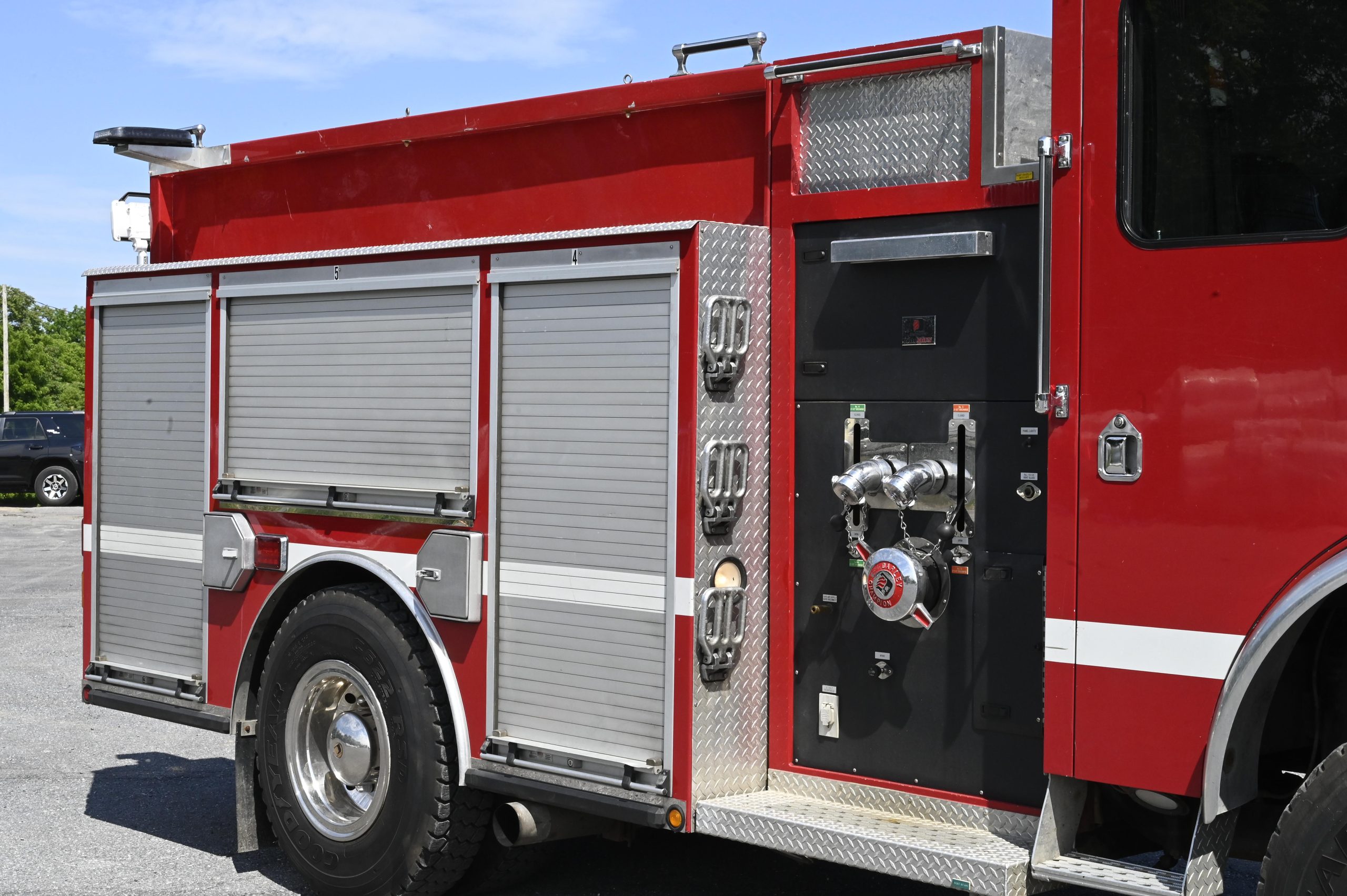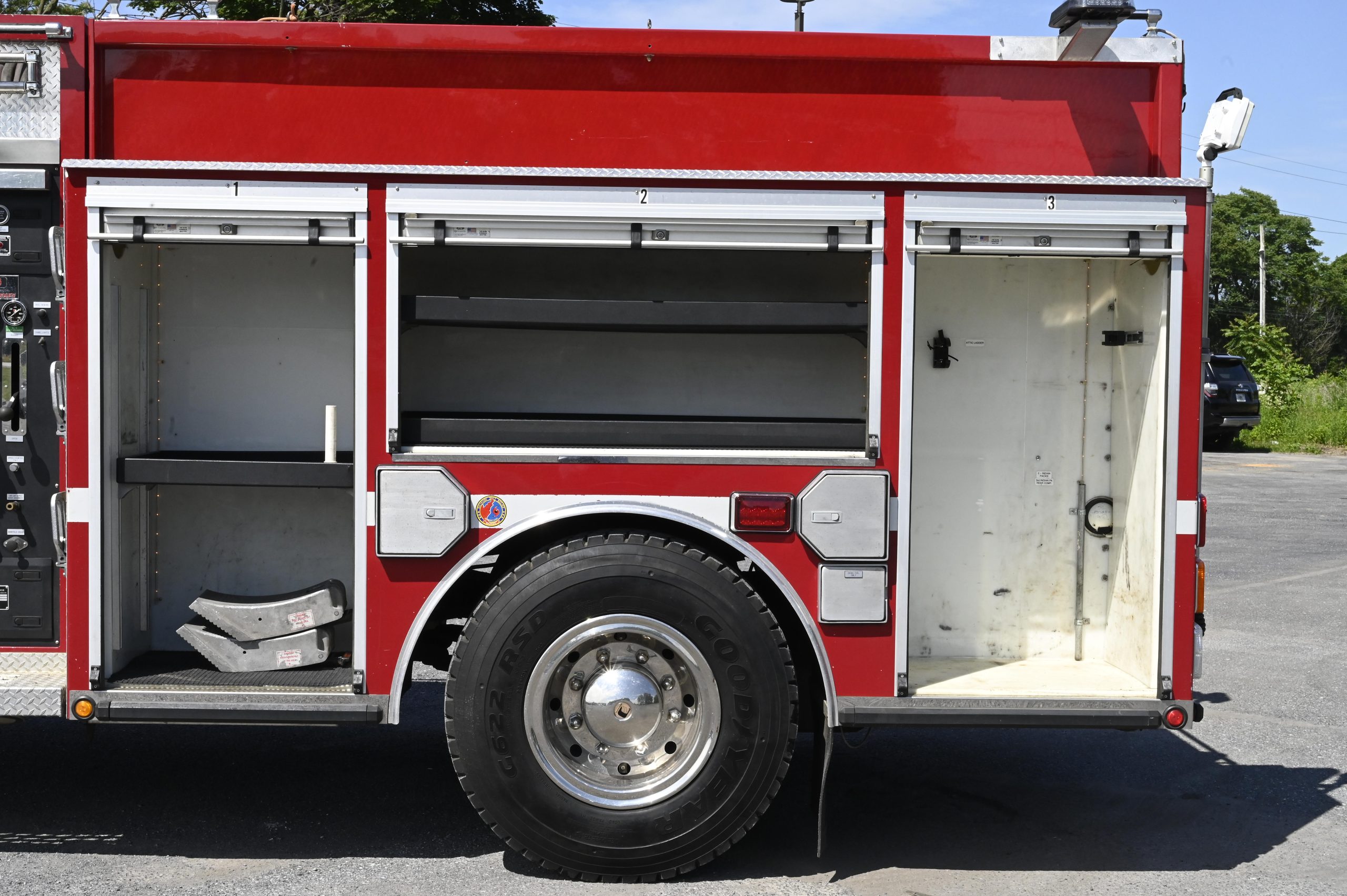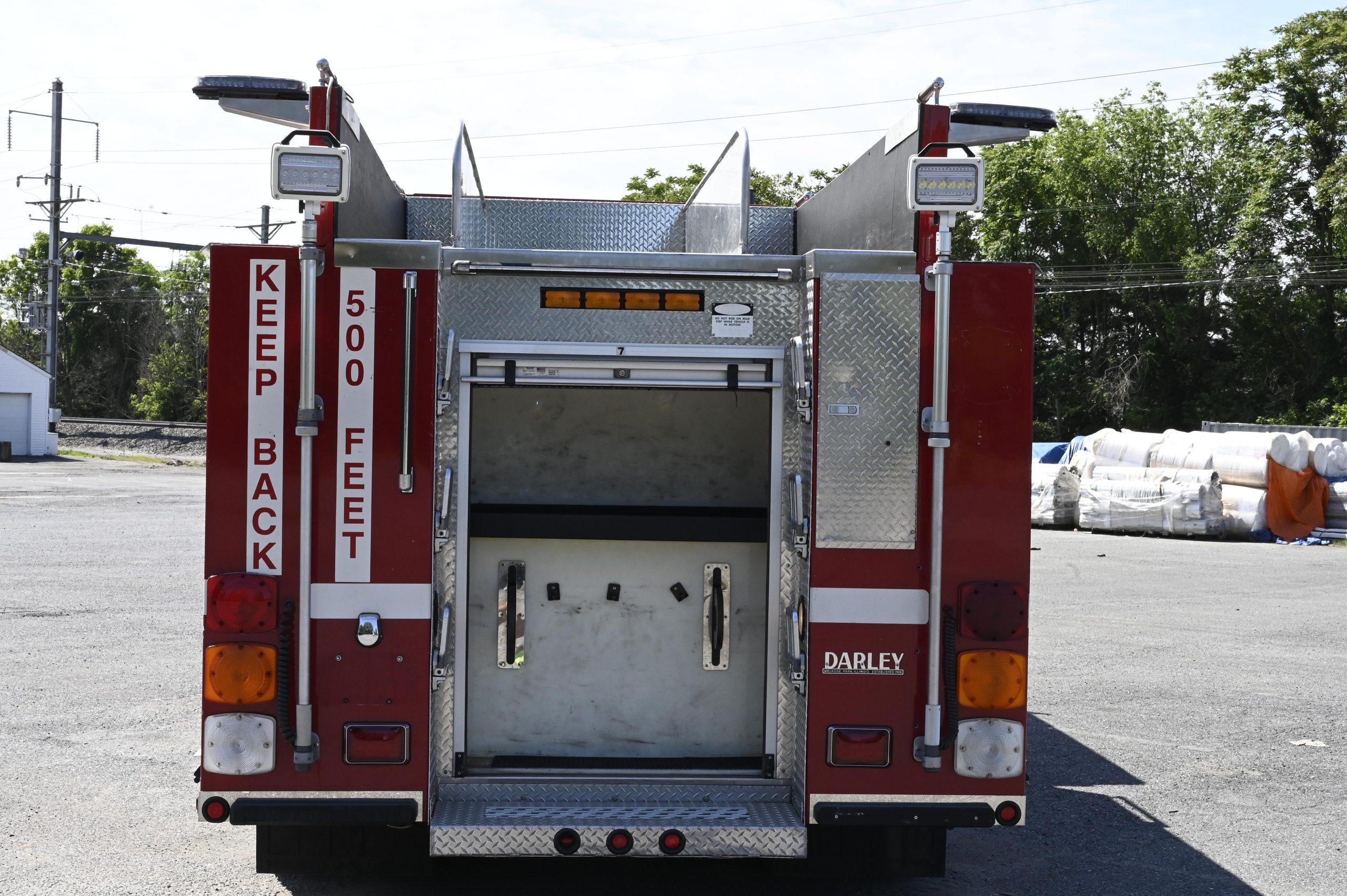 2001 HME/Darley 4X4 1000/500 Attack Pumper, HME Custom 4 door tilt cab chassis with 6 person seating, (3 SCBA), powered by a Cummins 8.3L ISC 315HP diesel engine with Allison MD3060 automatic transmission and Jake brake, Aluminum Body, 1000 GPM Darley single stage fire pump with CAFS (282 hours), 500 gallon poly booster tank, (1) crosslay, extended front bumper with 1.5″ preconnect and 5″suction, Booster reel mounted over pump panel, (2) 12V telescoping LED quartz lights mounted on rear, SCBA storage in wheel wells, ladder tunnel with 24′ & 14′ ladders, Emergency light package (mostly LED), electronic Q2B siren, dual air horns, rear arrow stick, 40,540 GVW, ONLY 16,800 miles and 1,800 engine hours, This truck is ready to be put in service and go off road………………. $99,000!!!
