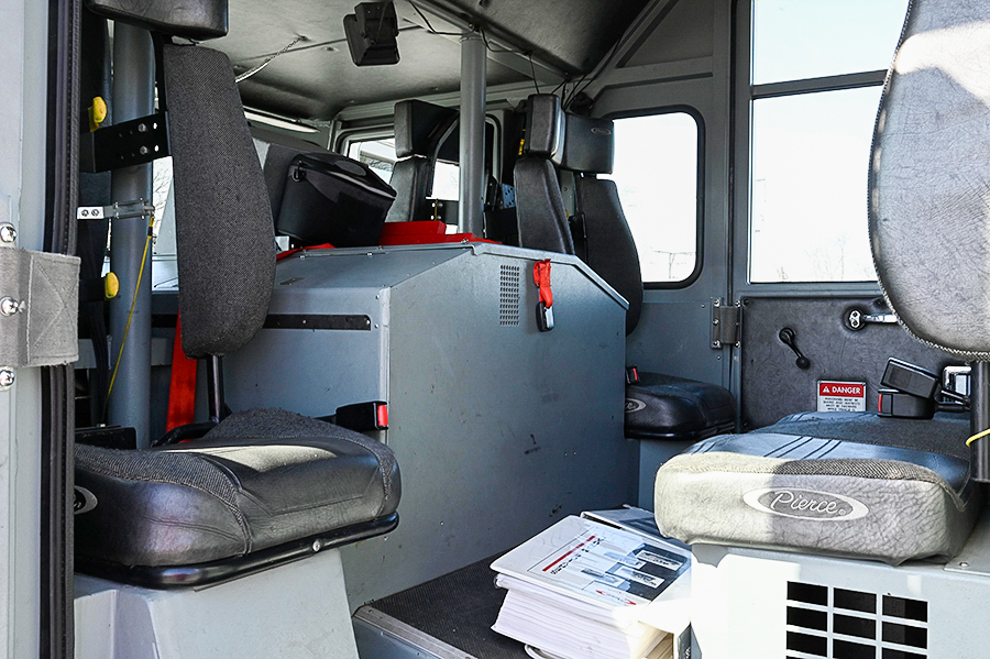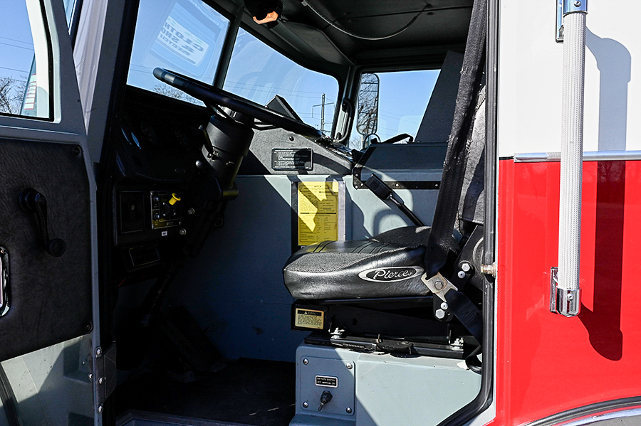 2002 Pierce 1250/1000 Rural Pumper, 4 door custom Saber 12″ raised roof cab with seating for 6 (5 SCBA seats), powered by a 330HP Cummins ISC diesel engine with Jake Brake, Allison MD3060 automatic transmission, 1250 GPM single stage Hale Waterous CS side mount pump, 1000 gallon poly tank, Prepped for 2.5″ rear direct tank fill and 10″ Newton dump valve on rear, (2) crosslays, deck gun, 19″ extended front bumper with 6″ intake and hose tray for 30′ of 5″, Aluminum Pierce body, 2 telescoping 1500W quartz lights,  Honda 5000 gas generator, 24′, 14′, 10′ ladders, electronic siren, Federal Q2B siren, SCBA cylinder holders in the wheel wells, 3,400 engine hours, 43,400 Miles…..     $99,000