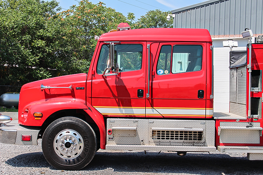 2003 Freightliner 1500/1000 Rural Pumper, Freightliner FL112 4 door commercial cab, Cummins 450 HP diesel engine, Allison automatic transmission, 5 seats with 4 SCBA seats, 1500 GPM Waterous top mount certified fire pump, Foampro foam system, 2 crosslays, front bumper preconnect, Aluminum rescue style body, 1000 gallon poly booster tank, (2) 20 gallon foam tanks, deck gun, Diamond plate hosebed cover, 16KW Harrison hydraulic generator, cord reel, 2 LED quartz lights, 2 LED brow lights, Ladders on Hydraulic ladder rack, warning lighting, siren, Federal Q2B, Aluminum wheels, dual air horns, 2,900 hours, 45,000 miles..     $ 110,000