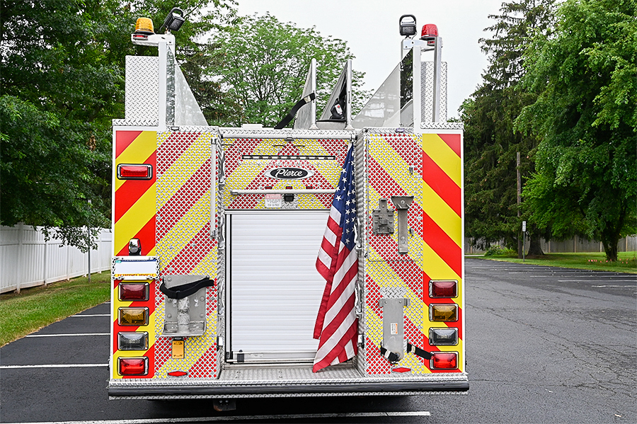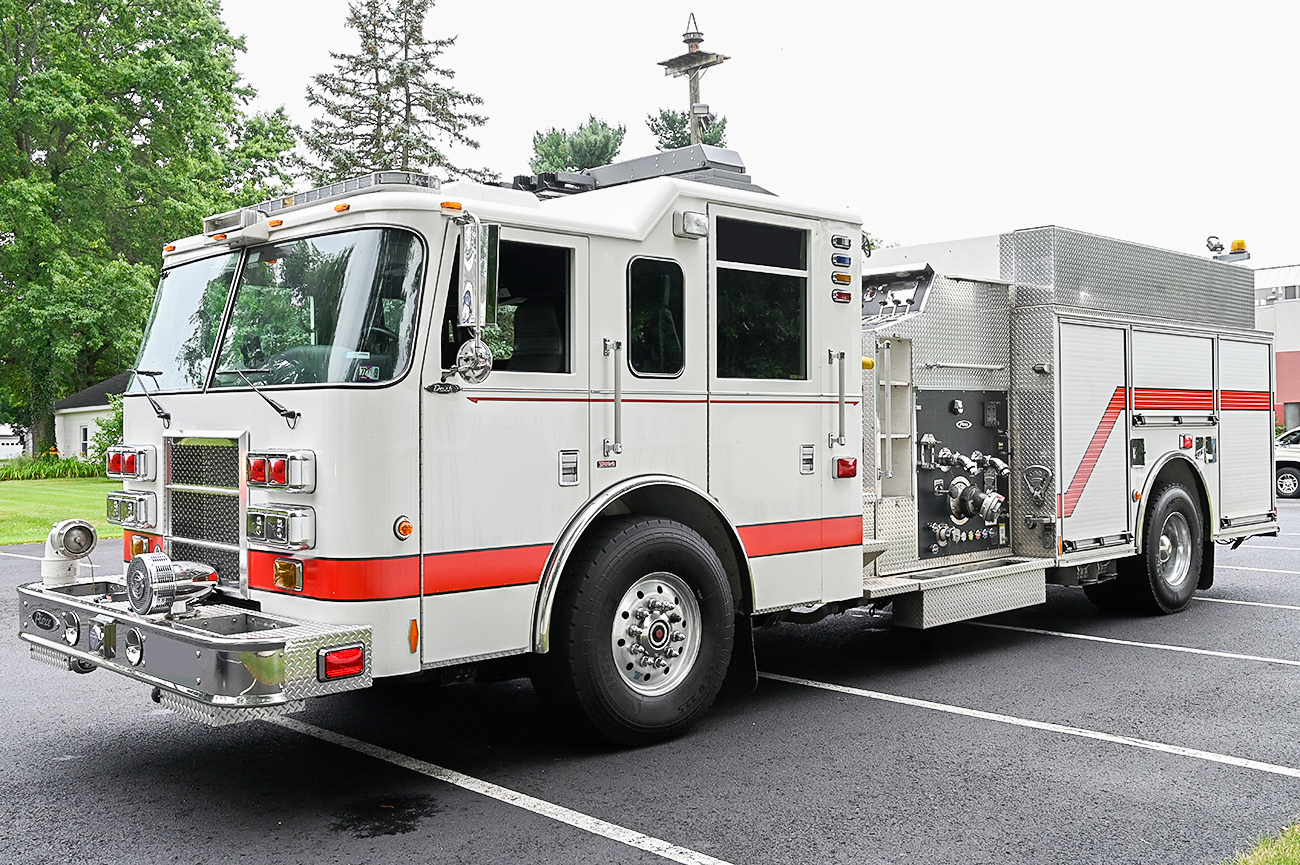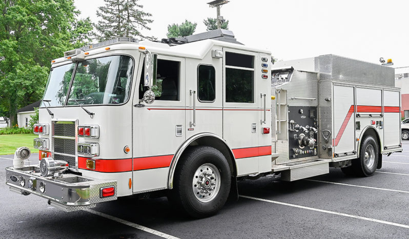 2003 Pierce 2250/750 Rescue Pumper, 4 door custom Dash raised roof cab with seating for 6 (5 SCBA seats), powered by a 475 HP Detroit diesel Series 60 engine, 3 position Jake brake, Allison automatic transmission, A/C, automatic snow chains, 2250 GPM top mount Hale QMax pump with current pump test, 750 gallon poly tank, (3) crosslays, deck gun, extended front bumper with 1.75″ discharge and hose tray, and 6″ swivel front suction intake, Aluminum Rescue body with HIGH SIDE compartments on both sides with roll up doors, coffin compartments on top, 1 tripod mounted quartz light, brow light, 6 head light tower, Harrison 10KW hydraulic generator (with less then 80 hours), 2 cord reels, 24′, 16′, 10′ aluminum ladders inside compartment, LED headlights, LED light package and electronic siren, Federal Q2B siren, SCBA cylinder holders in the wheel wells, 2 wheel chocks, Aluminum wheels, Rear vision camera and traffic advisor, rear chevrons, 3,100 engine hours, 355 pump hours, 34,000 Miles…..
