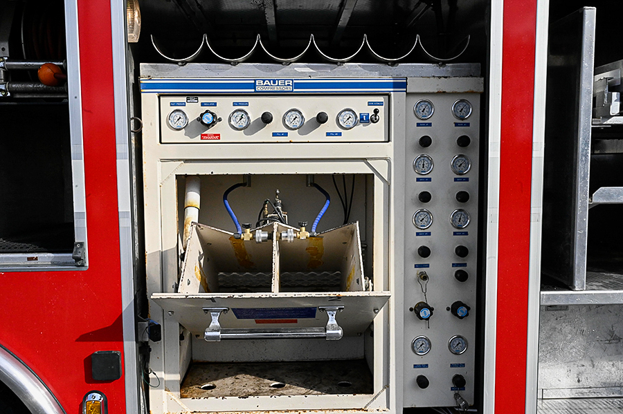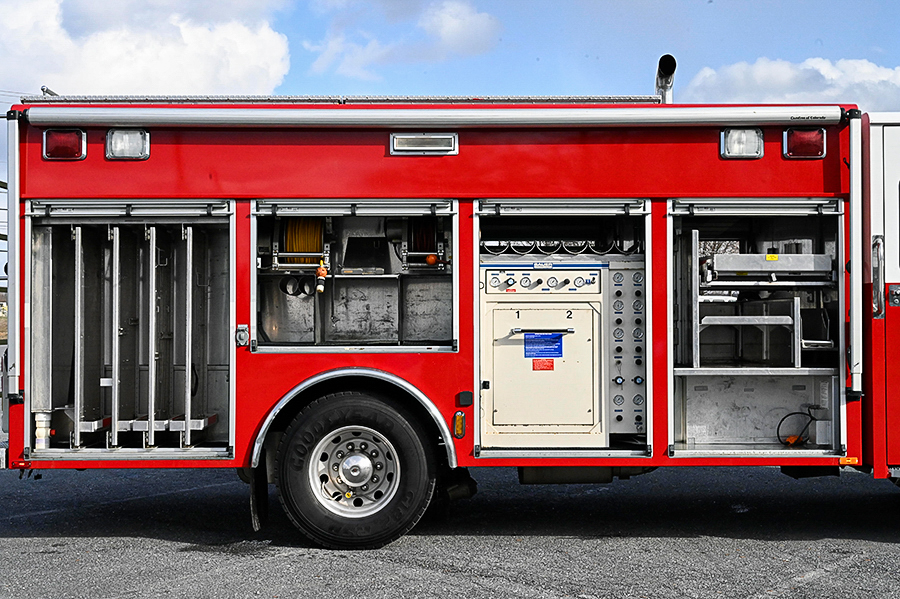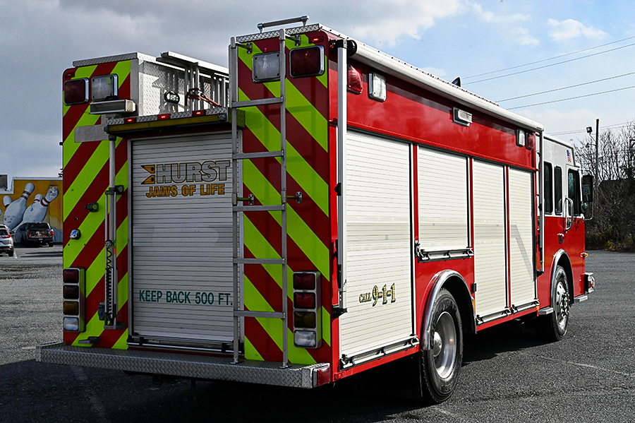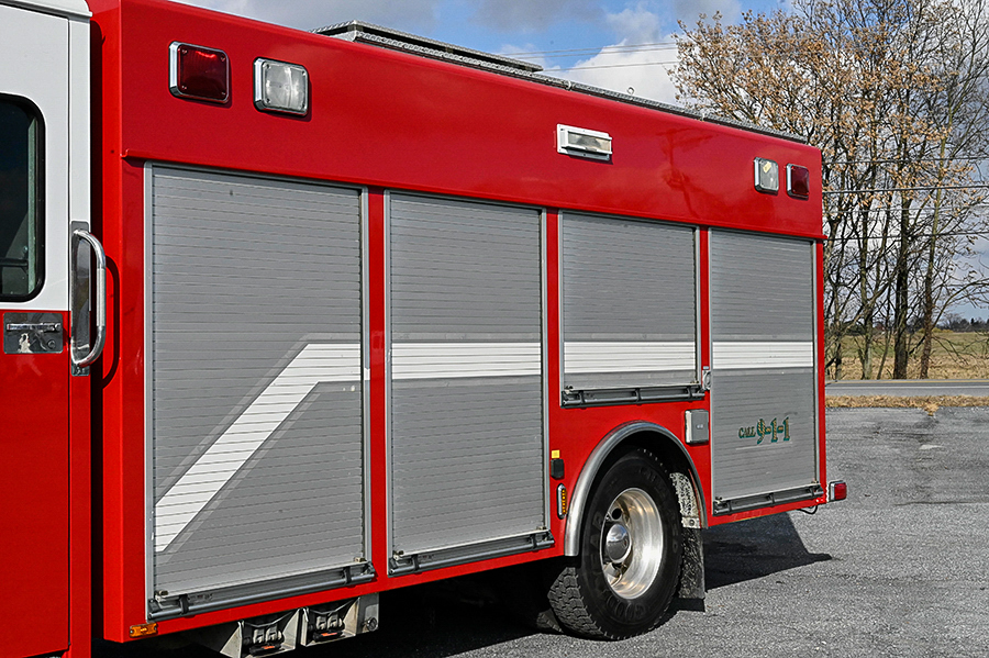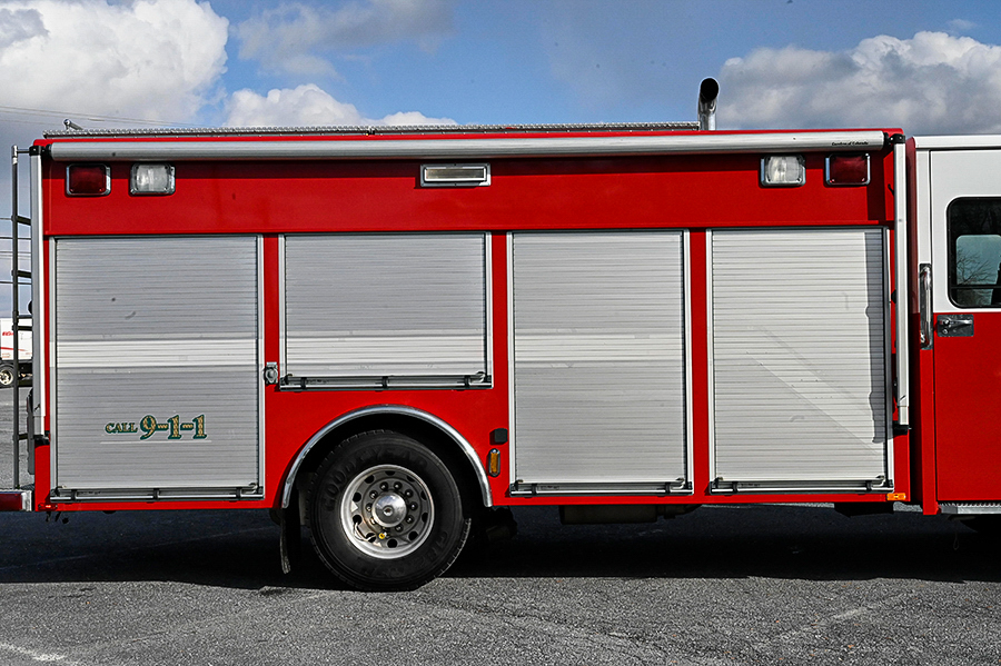 2003 Spartan/SVI Heavy Rescue, Spartan 10″ raised roof custom 4 door cab with A/C and seating for 6 (5 SCBA), powered by a Cummins ISC 350 HP engine with exhaust Brake, Allison MD 3066P automatic transmission, automatic tire chains, 250 GPM single stage compartment mounted pump, 250 gallon Poly water tank, 20 gallon foam tank, 1 crosslay, SVI aluminum 18′ rescue body with roll-up doors, lots of roll out trays and adjustable shelves, large coffin style storage compartments on roof, (6) bank 4,500psi cascade system with 2 bottle Bauer fill station (7,000 psi bottles), (2)low pressure air reels, 24″ extended front bumper with 12K winch, side and rear portable winch mounts, Officers side roll out awning,  250LB floor dry hopper, (3) ladders (20′, 12′, 10′) 30KW Harrison PTO generator, 2 electric cord reels, (1)body mounted quartz lights on each side, (1)rear tripod mounted quartz light, Command 6 head Light Tower, (2)Hurst hydraulic tool reels each with power unit, LED emergency lighting package, electronic siren, dual air horns, vertical exhaust, Federal Q2B siren, 42,000 LB. GVWR, rear arrow stick and chevrons, Aluminum wheels, ONLY 32,000 MILES, and 3,200 engine hours, ……………...$199,000