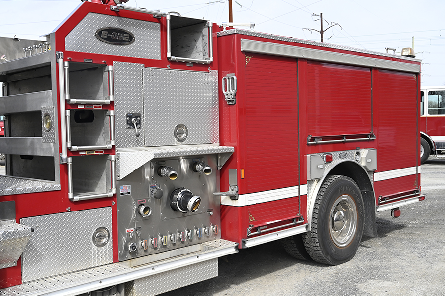 2004 E-One 2000/750 Pumper, Cyclone II 4 door custom 16″ raised roof aluminum 6 person cab with seating for 4 (3 SCBA seats), EMS Cabinet with roll-up door in cab, Powered by 370 HP Cummins ISL diesel with Jake Brake, Allison EVS3000 automatic transmission, A/C, Hale QMax Top mount 2000 GPM single stage pump with current pump test, 750 gallon poly tank, 20 gallon class A foam and 30 gallon class B foam tanks, (3) speedlays (2 preconnected), Deck gun with ground base and stacked tips, 24″ Extended front bumper with 1.5″ front trashline discharge and 5″ swivel front suction intake, E-One Aluminum Rescue body with HIGH SIDE compartments on both sides with aluminum roll up doors, (2) 12V Scene lights mounted on rear of the cab, Cab mounted 12V brow light, Emergency light package and electronic siren, Opticom traffic clearing light, Federal Q2B siren, air horns, SCBA cylinder holders in the wheel wells, Hydraulic ladder rack (24′ 14′ 10′), 2 wheel chocks, Onboard Kussmaul air compressor and battery charger, ONLY 67,200 Miles and 7718 hours…………$109,000