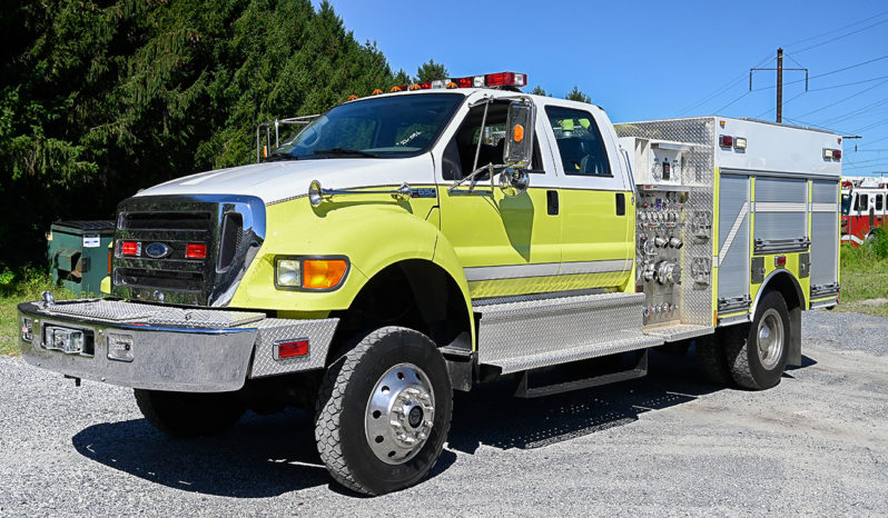 2004 Ford 4X4 1000/400 Attack Pumper, Ford F-650 series 4 door chassis with 5 person seating (3 SCBA), air conditioning, powered by a Caterpillar 7.2L, 300HP diesel engine with push button automatic transmission, PolyBilt body (won’t dent, ding, rust or corrode), 1000 GPM Hale Q-Max single stage fire pump, 400 gallon poly booster tank, (2) crosslays, Deck Gun, extended front bumper with warn 12K winch, and preconnect, high side compartments with roll up doors, Onan 6,000 watt PTO generator, cord reel, (2) LED scene lights, Upper coffin compartments on drivers side, ladder compartment for ladders on officers side, Speedy dry hopper, rear tow hitch, SCBA storage in wheel wells, Emergency light package, electronic siren, Dual air horns, 26,000 GVW, ONLY 12,000 miles, This truck is ready to be put in service and go offroad……………..