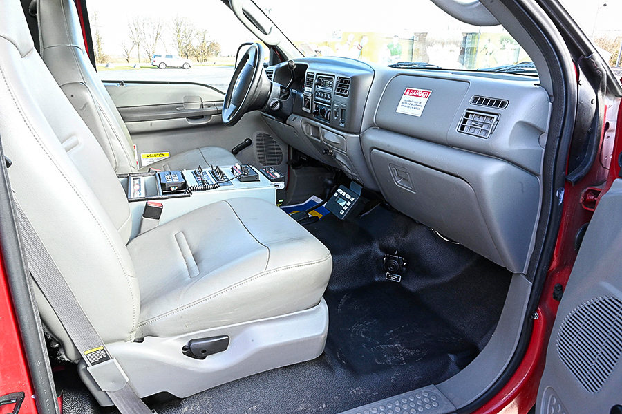 2004 Ford 4X4 Light Rescue/Squad truck, 2 door Ford F550 Super Duty cab with seating for 2 firefighters, powered by 6.0L POWERSTROKE diesel engine, automatic transmission, A/C, Pierce 12′ Aluminum closed compartment body with large compartments on both sides, roll up doors, numerous pull out trays and tool boards, light package electronic siren, rear arrow stick, New Tires, New LED bar light, ONLY 9,200 MILES and 973 engine hours, frontline ready… $60,000