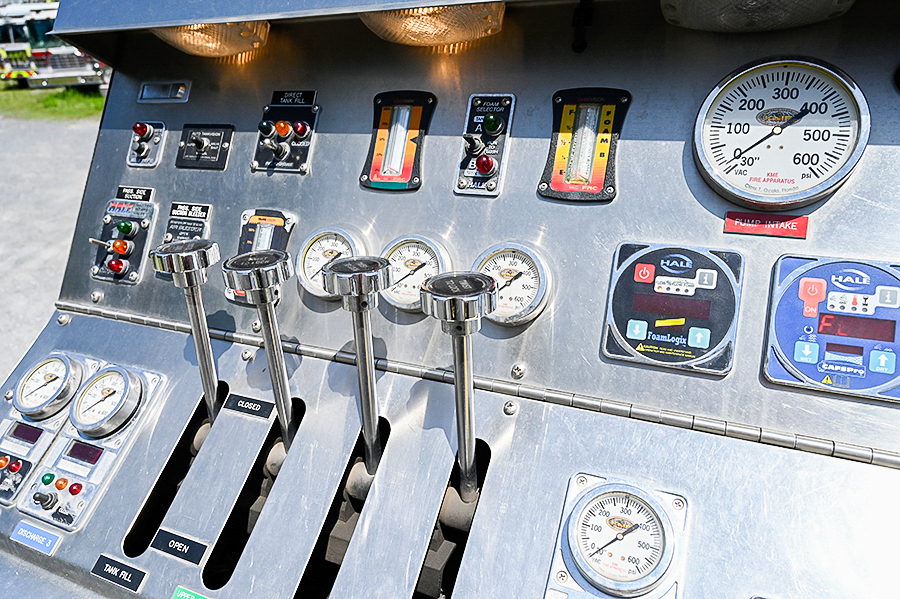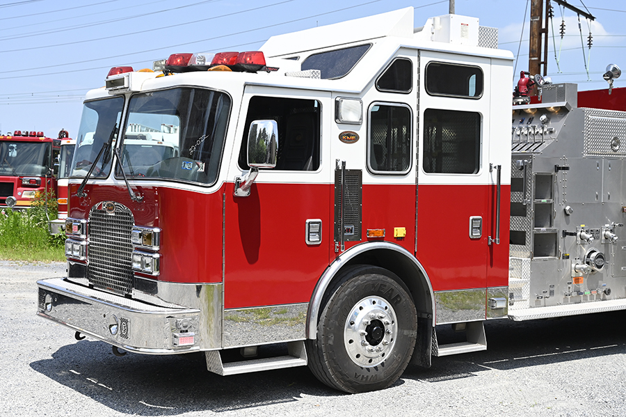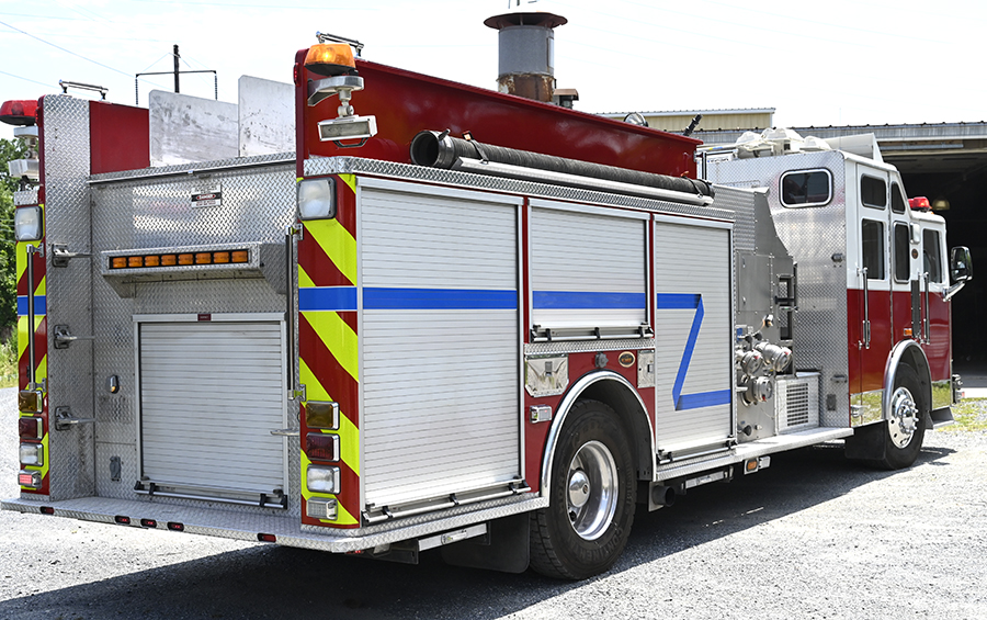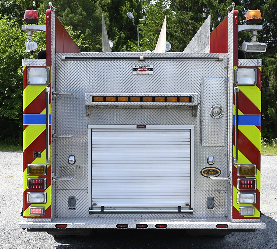 2004 KME 1500/1000 Pumper, 4 door custom raised roof cab with seating for 8, powered by a 60 Series Detroit 500 HP diesel engine with Jake Brake, Allison automatic transmission, A/C, On Spot tire chains, Top mount 1500 GPM Hale single stage pump with current pump test, 1000 gallon poly tank, 3 crosslays (1 – 2.5″ 2 – 1.75″) Deck gun with stacked tips, KME Stainless steel body with HIGH SIDE compartments on drivers side with ALUMINUM roll-up doors, 1 brow light on front of cab, 2 quartz lights mounted on rear, Nightscan Light tower, PTO generator, 24′ , 12′ and 10′ ladders, electronic siren, dual air horns, 2 lengths of hard suction, SCBA storage in the wheel wells, Aluminum wheels, 2 wheel chocks, rear traffic advisor light, 1,600 engine hours, Only 22,000 Miles……….