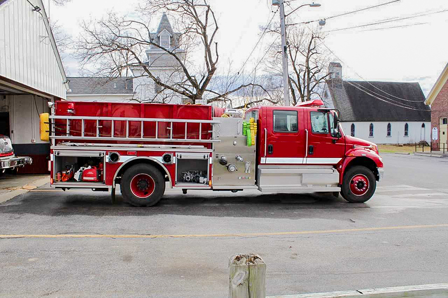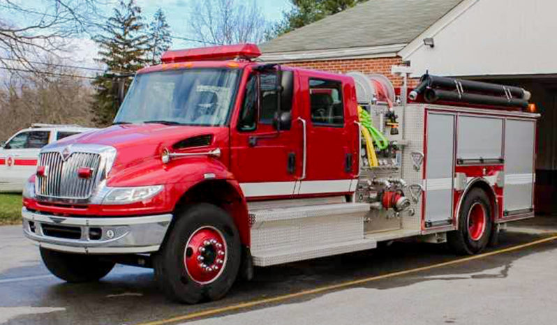2005 International/Pierce 1250/1000 Rural Pumper, 4 door International air conditioned cab with seating for 5 firefighters, 4 SCBA seats, powered by 330 HP International diesel engine with exhaust brake, Allison automatic transmission, 1250 GPM Hale single stage side mount pump, 1000 gallon poly tank, 2 crosslays over pump panel, drivers side mounted hose reel, piping for deck gun ( NO gun included) Pierce aluminum body with HIGH SIDE compartments on drivers side with roll up doors, adjustable shelves in compartments, large rear compartment with aluminum roll-up door, lightbar and electronic siren, dual air horns, 24′ extension ladder, 14′ roof ladder, attic ladder, 2 sections of 10′ lightweight 6″ hard suction hose, SCBA cylinder holders in the wheelwells, 2 12V LED lights over pump panel, hose bed cover, rear directional arrow light, ONLY 16,500 MILES, GVWR 36,000 lbs …..$110,000