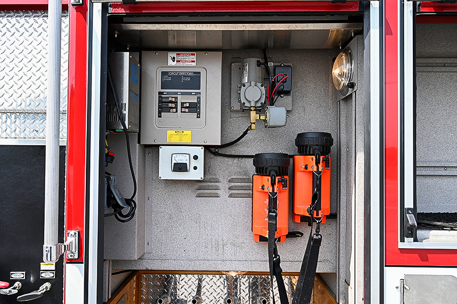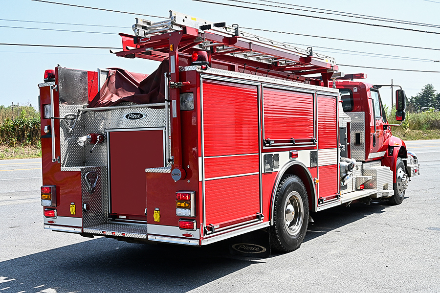 2005 International 1500/750 Top Mount Pumper, 2 door International 7400 cab with seating for 3 firefighters, powered by International DT570 330HP diesel engine with exhaust brake, Allison 3000EVS automatic transmission, automatic tire chains, A/C, 1500 GPM Waterous single stage top mount pump, 750 gallon poly tank, 25 and 20 gallon foam tanks, 2 speedlays, 22″ extended front bumper with 6″ intake and storage, Pierce aluminum body with high side compartments on both sides with roll up doors, lightbar and electronic siren, dual air horns, Hydraulic ladder rack (24′,14′,10′ ladders) and two hard suctions, Honda liquid cooled 6KW gas generator, (2) 2000w scene lights at pump panel, SCBA cylinder holders in the wheel wells. ONLY 14,400 MILES and 1.057 hours……. – $130,000