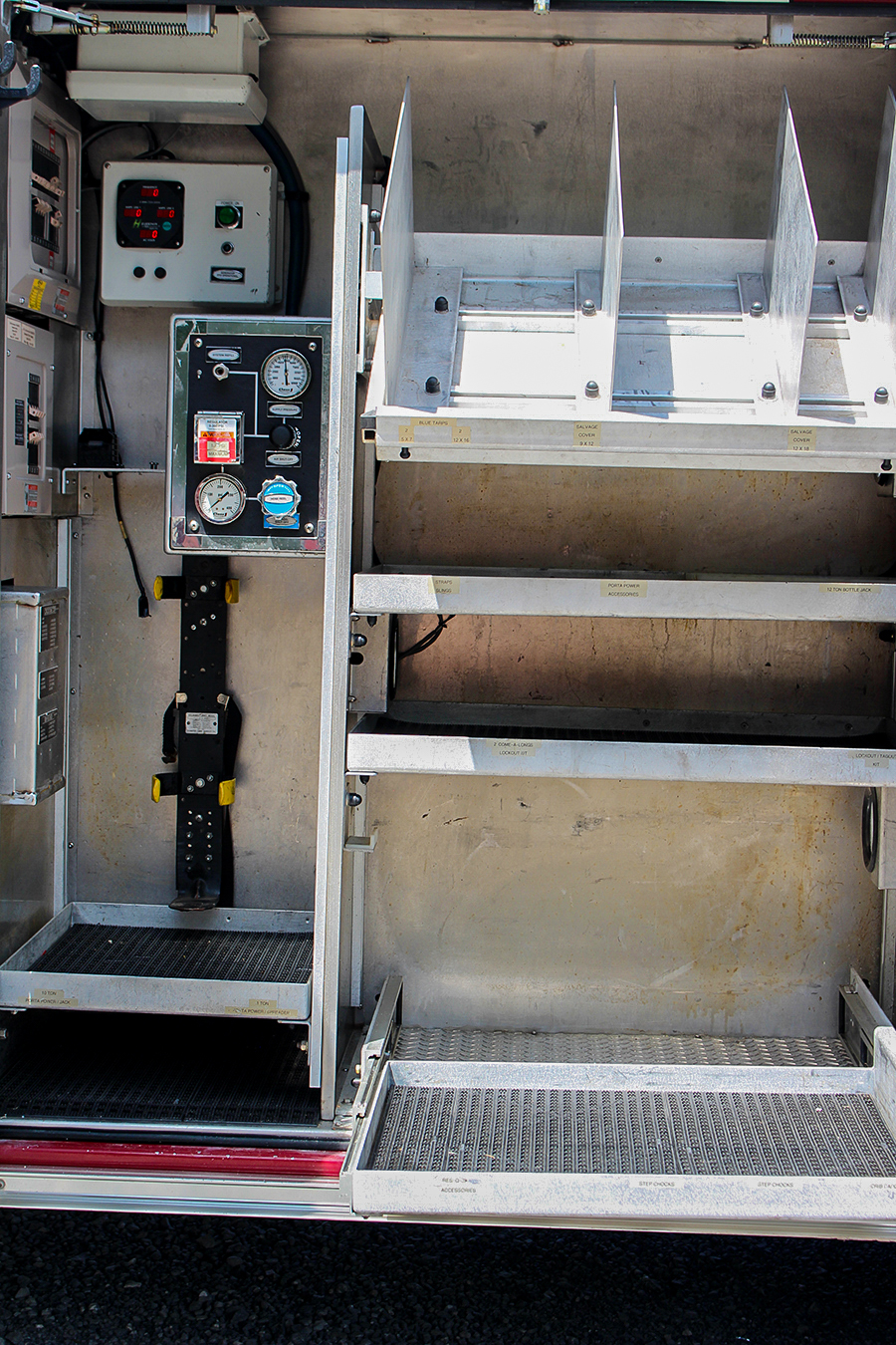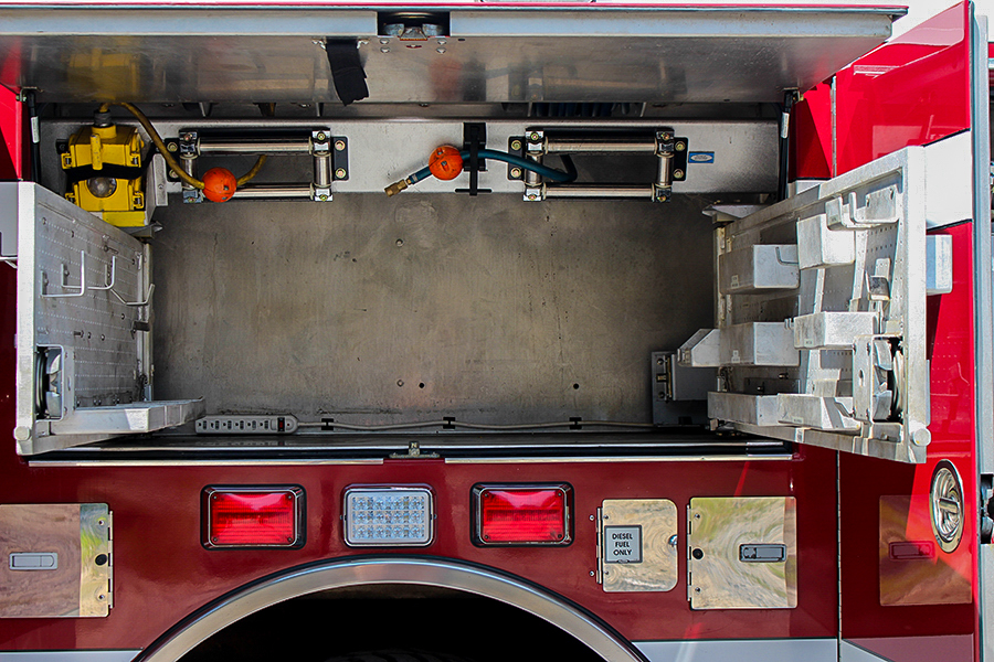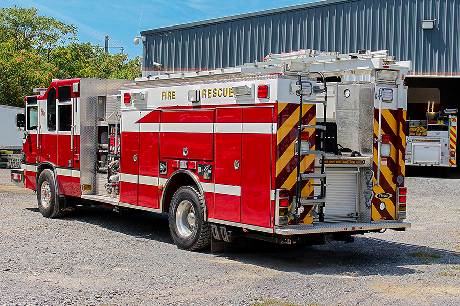 2006 Pierce 2000/750 Rescue Pumper, 4 door Quantum 12″ raised roof custom cab with seating for 6 (5 SCBA seats), powered by a 515HP Detroit Diesel 60 series engine, 3 stage Jake Brake, Allison 4000EVS automatic transmission, A/C, pierce smart steering wheel, Side mount 2000 GPM Hale QMax pump, current pump test, 750 gallon poly tank, Trident air primer, (2) crosslays, (2) speedlays, 19″ Extended front bumper with 1.5″ discharge, Pierce Rescue body with HIGH SIDE compartments on both sides with hinged doors, numerous slide trays and pull out tool boards, Low NY style hose bed, coffin compartments on top, brow light, (2) rear mounted quartz lights, (2) quartz lights mounted on each side of body, (2) roof mounted quartz lights, Harrison 30KW PTO generator, (2) cord reels, 200′ high pressure air reel with onboard storage bottle, 4 preconnected amkus hydraulic reels with extraction tools included (combi, spreader, cutter, ram with extensions) (2) electric and (1) gas power plants, Winch mounts on all 4 sides (not included), Hydraulic ladder rack (24′, 14′, attic, little giant), Stokes basket storage (stokes included) LED light package and electronic siren, Federal Q2B siren, roto-ray, dual horns, 200lb Oil dry hopper, SCBA cylinder holders in the wheel wells, onboard refrigerator, 2 wheel chocks, Vogel 22 point lube system, Alcoa wheels, wired for David Clark system, Rear traffic arrow, 3,200 hours, 32,400 Miles.………….. $185,000
