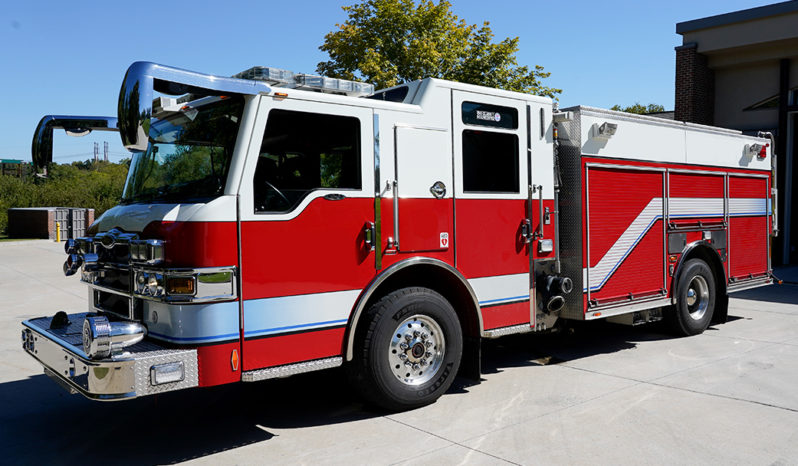 2008 Pierce 1500/500 Pumper, 4 door custom Velocity cab with raised roof, includes seating for 5, powered by a 500 HP Cummins ISM diesel engine with Jake Brake, Allison automatic transmission, automatic tire chains, A/C, 1500 GPM Pierce PUC single stage side mount pump with CAFS, 500 gallon poly tank with 30 gallon foam cell, (3) 1.50″ crosslays, deck gun with ground base, extended front bumper with discharge and hose tray, HIGH SIDE compartments on both sides with roll up doors, 10K Generator, (2) scene lights mounted on each side of body, 2 telescoping scene lights mounted on rear of cab, 24′, 14′, attic ladders, LED light package and electronic siren, dual air horns, Rotoray, Federal Q2B, Rear chevrons, rear vision camera, coffin compartments on top, aluminum wheels, 2 wheel chocks, GVWR 43,500 lbs, only 40,000 Miles…..