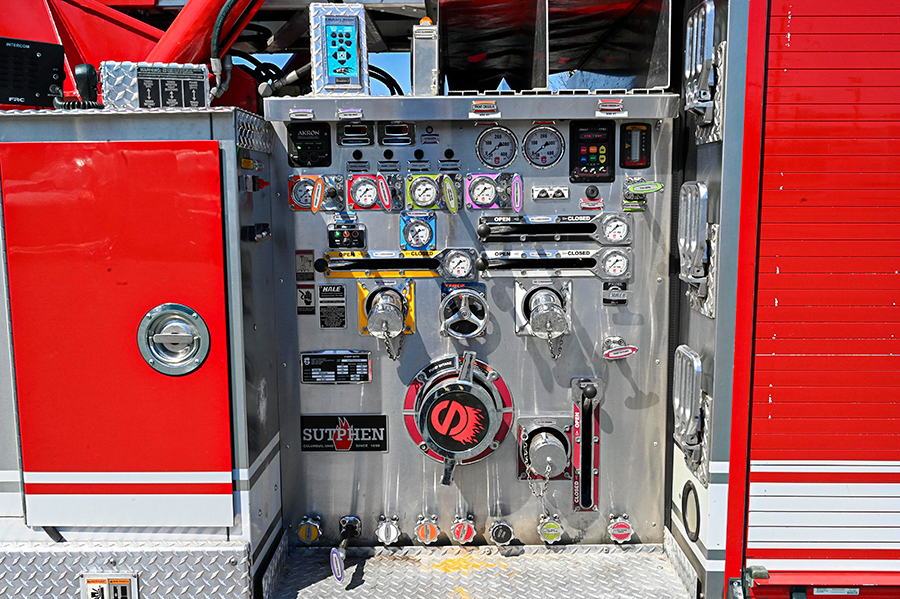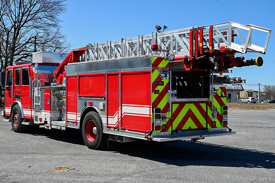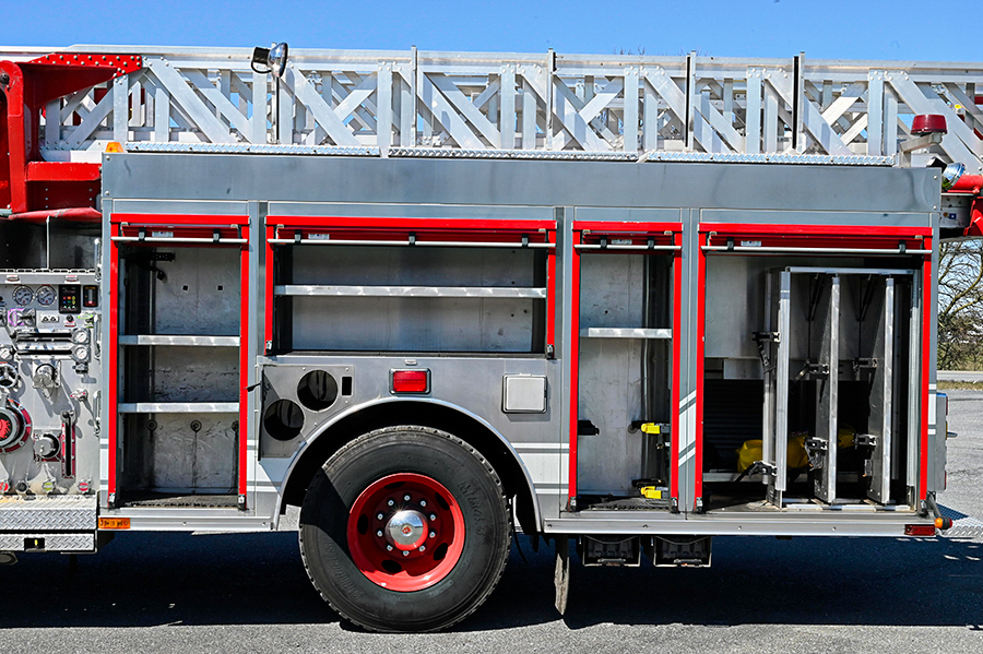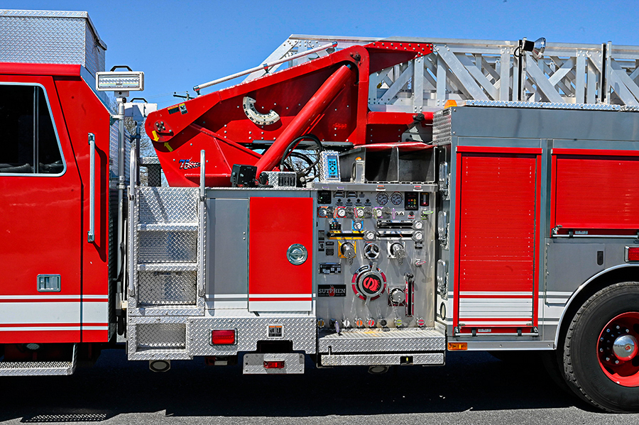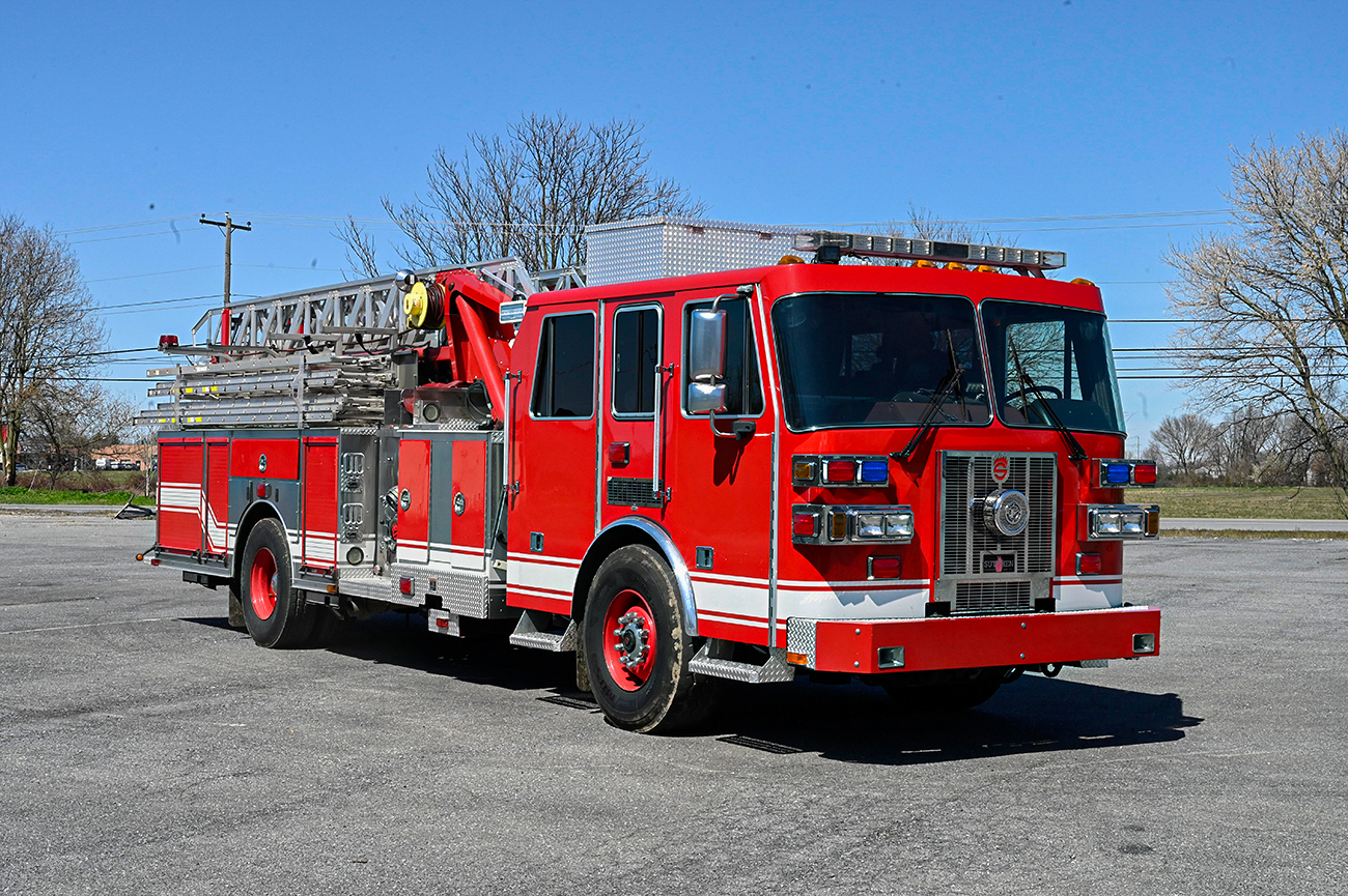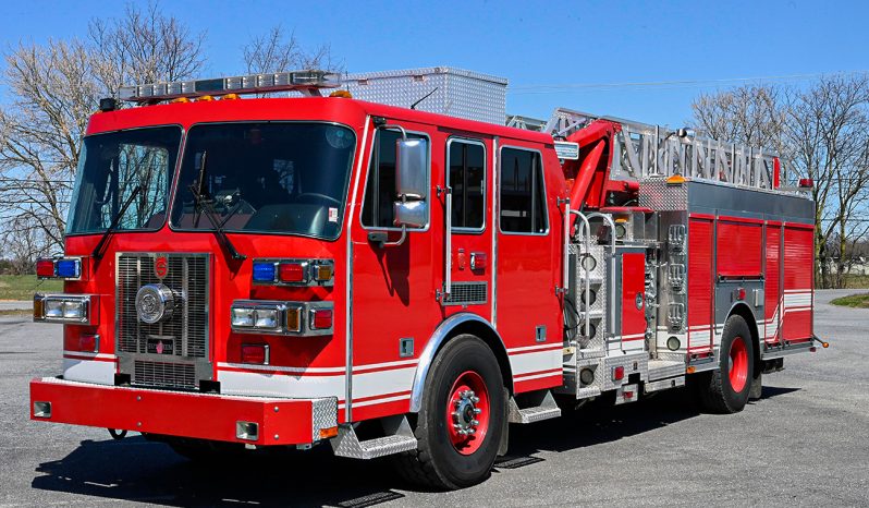 2008 Sutphen 1750/500 75′ Quint mid-mount, 4 door custom cab with seating for 8 firefighters, 5 SCBA seats, powered by Cummins ISM 450HP diesel engine with 3 stage Jake brake, Allison EVS4000 automatic transmission, 1750 GPM Hale two stage pump, 500 gallon poly tank, 2 crosslays over pump panel, 75′ 4 section Aluminum aerial ladder, Elkhart Scorpion remote nozzle, 1000lb dry tip load, (2) 12V telescoping scene lights on rear of cab, (1) 12V scene light on bucket, Sutphen stainless steel body, LED compartment lights, Numerous roll out trays and tool boards, 35′ & 24′ extension ladders, 14′ roof ladder, 10′ folding ladder, SCBA cylinder holders in the wheel wells, Federal Q2B, LED lightbar and electronic siren, dual air horns, vision camera, ONLY 24,000 MILES and 3,015 hours – $350,000