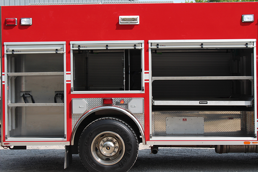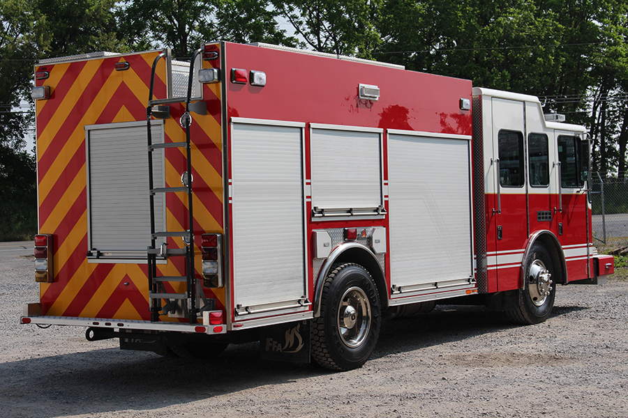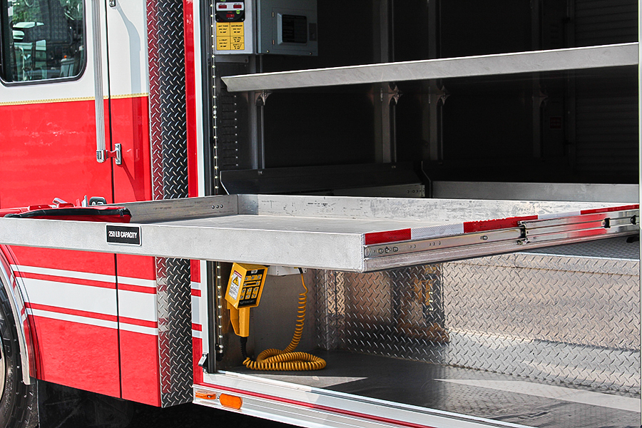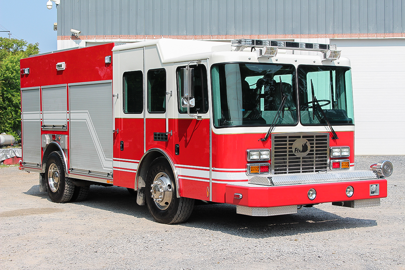2010 Ferrara Intruder II Heavy Rescue, custom 4 door chassis with seating for 6 (3 SCBA seats), Cummins ISC 330 HP Diesel Engine with two stage Jake Brake, 6 speed Allison automatic transmission, A/C, transverse compartment space, roll out shelves, Extended front bumper with storage, Upper coffin compartments with easy access to roof, Single bottle cascade, Ferrara aluminum body, 25KW PTO generator, cord reel, 4 head Wilburt light tower, (2) brow lights, quartz lights mounted on each side of body, rear mounted cord and air reel, 42,180lb. GVWR, LED Emergency lighting, Federal Q2B and electronic siren. This truck is like new with a short wheelbase, only 9,400 Miles …………$299,000
