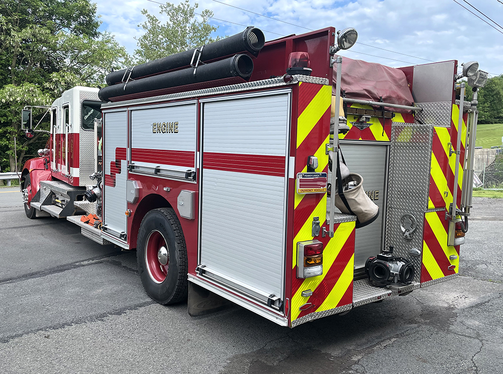 2010 Kenworth/Pierce 1250/1000 Rural pumper, Kenworth T370 commercial 4 door chassis with 5 person seating (4 SCBA), cab air conditioning, powered by a Paccar 350 HP diesel engine with Jake brake and Allison automatic transmission, Pierce Contender Aluminum body, 1250 GPM Waterous single stage top mount fire pump, 1000 gallon poly booster tank, pre-piped deck gun, 2 crosslays, compartments on both sides with roll-up doors, 6KW generator, cord reel, (2) quartz lights mounted at pump panel, (1) tripod mounted light on rear, (2) 6″ hard suction hose, 3 aluminum ground ladders, SCBA storage in wheel wells, includes MSA TIC, ONLY 17,000 miles and 1300 engine hours, 38,000 lb. GVWR, LED lightbar, Federal E-Q2B electronic siren, and air horns, rear vision camera, clean……………..$145,000