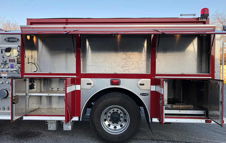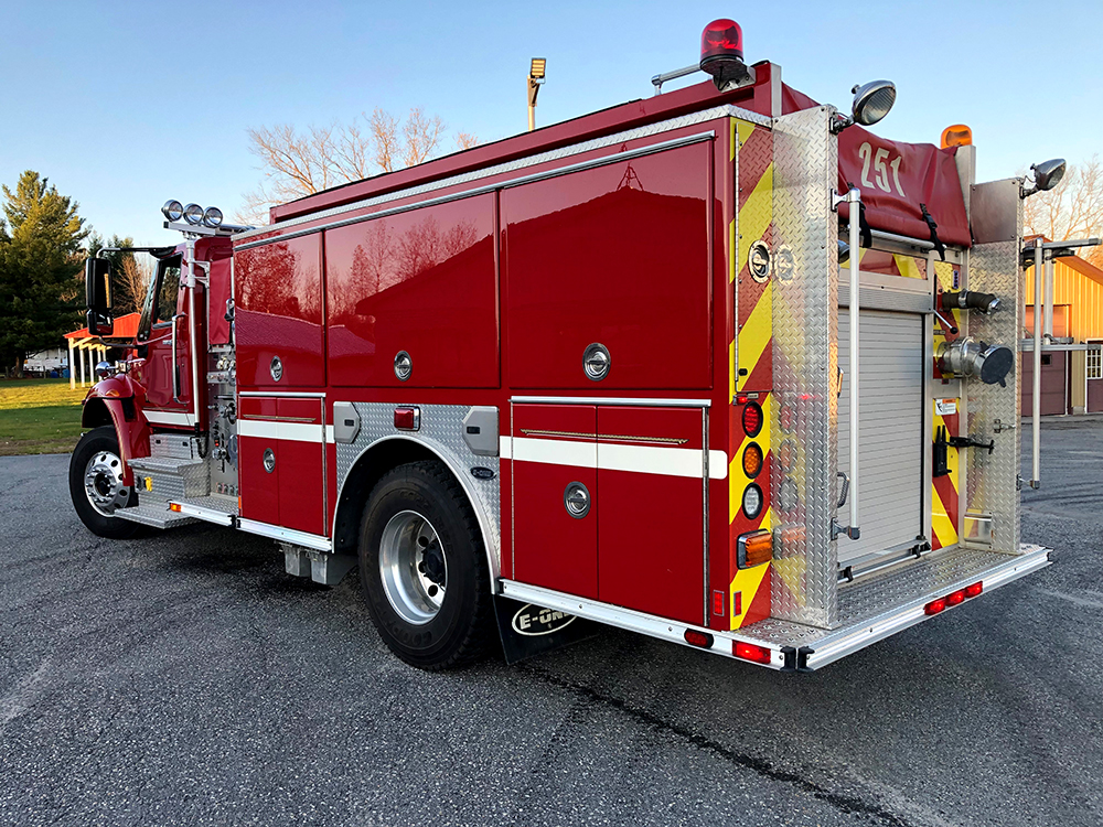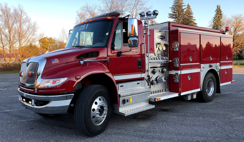 2011 International/E-One 1250/1000 Rural pumper, International 4400 conventional chassis with 3 person seating, air conditioning, powered by a Maxx Force 9 330HP diesel engine with Exhaust brake, and Allison EVS-3000 automatic transmission, E-One Aluminum body, 1250 GPM Hale Q-Flo single stage fire pump, 1030 gallon poly booster tank, piped for deck gun(not included) , 2 crosslays, high side compartments on driver side, SCBA cylinder holders in wheel well, hard suction hose, 3 aluminum ground ladders, Federal LED light package, Federal PA300 electronic siren, and air horns, 12V scene lighting, aluminum wheels, ONLY 11,000 miles and this truck will fit in a 10′ door……..$140,000